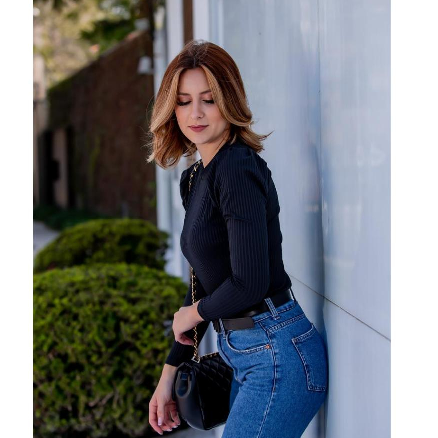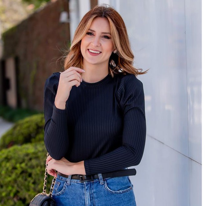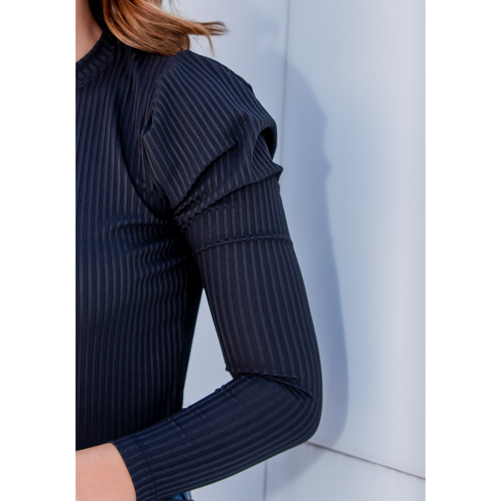 Blusa Canelada Manga Longa Princesa Preta - Blusa Princesa Manga Longa Canelada