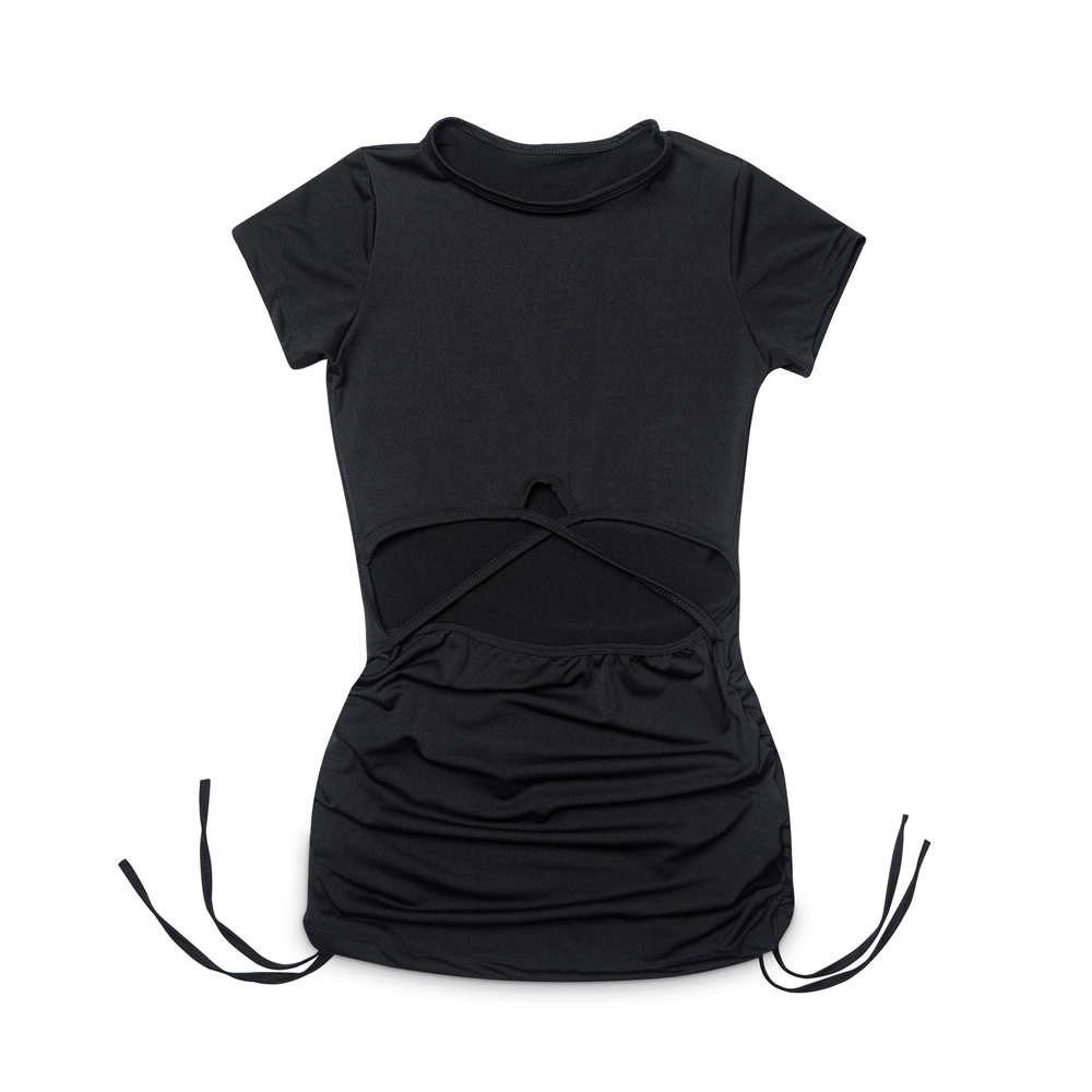 Vestido Curto Franzido Amarração Lateral Moda Gringa - Preto
