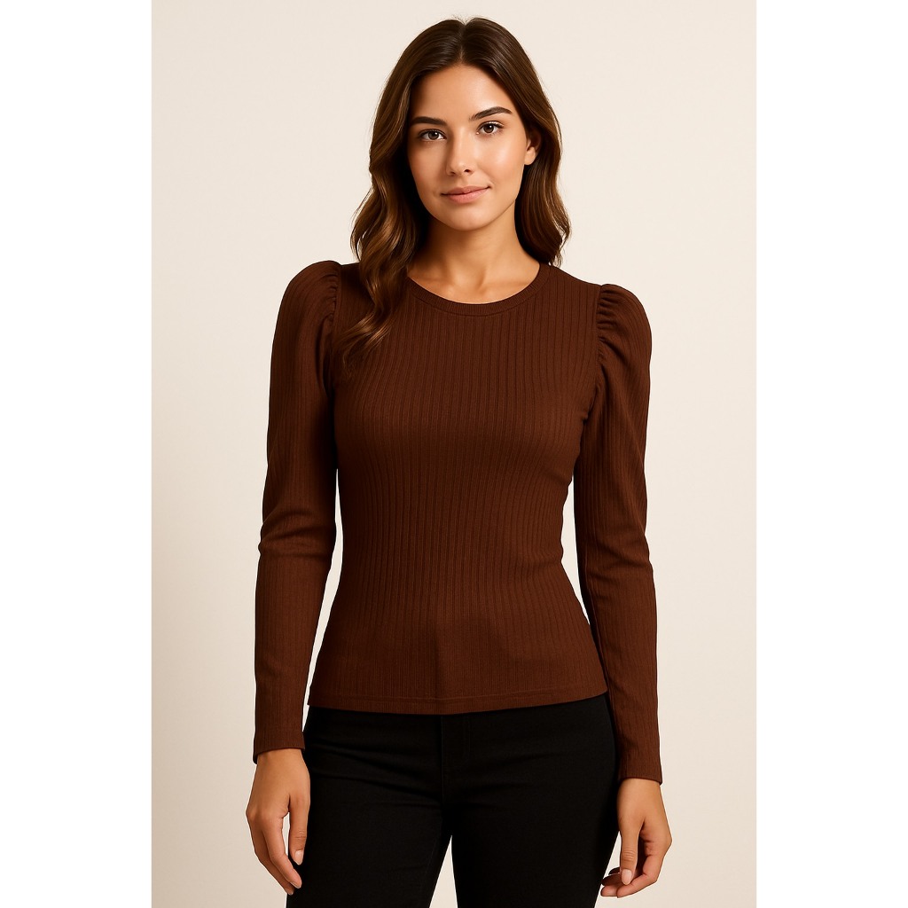 Blusa Canelada Manga Longa Princesa Outono Inverno - Várias Cores