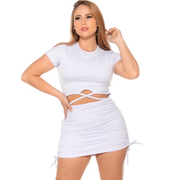 Vestido Curto Franzido Lateral Moda Gringa - Branco