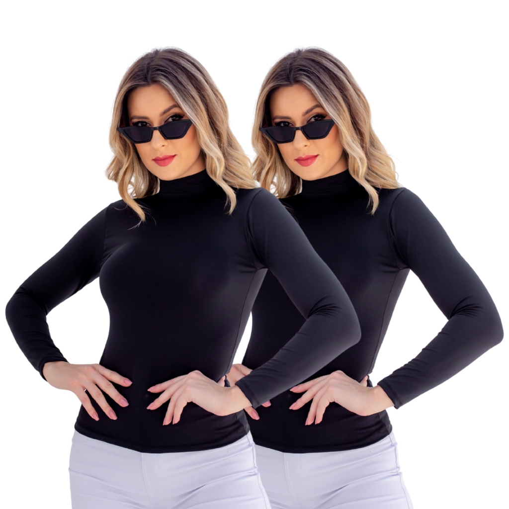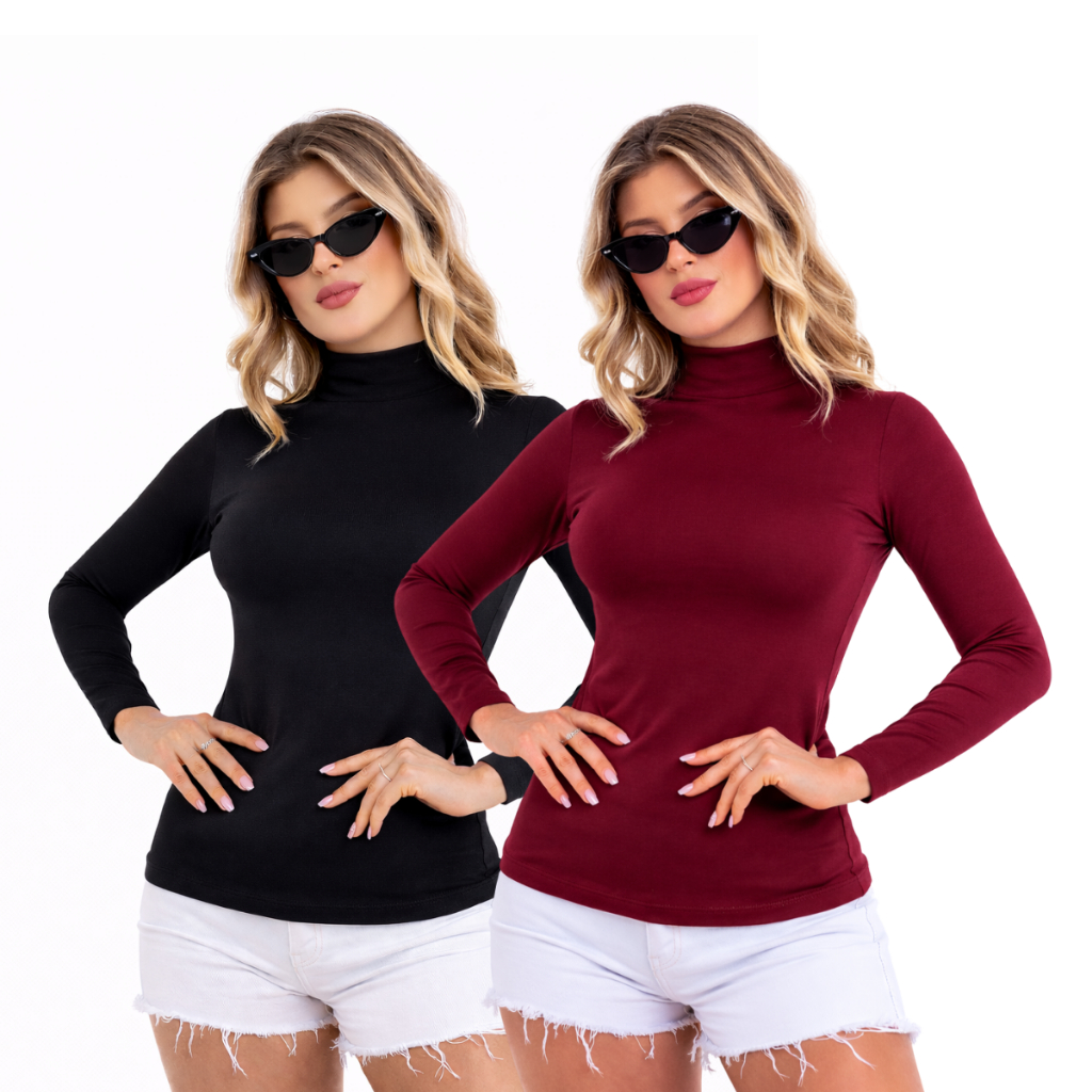 KIT 2 - Cacharrel Feminina - Blusa Cacharrel de Manga Longa - Cacharrel Lisa de Gola Alta