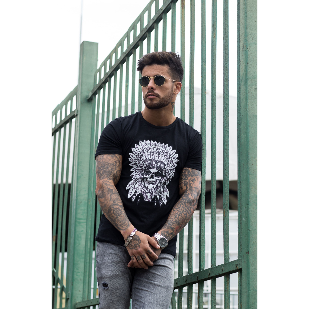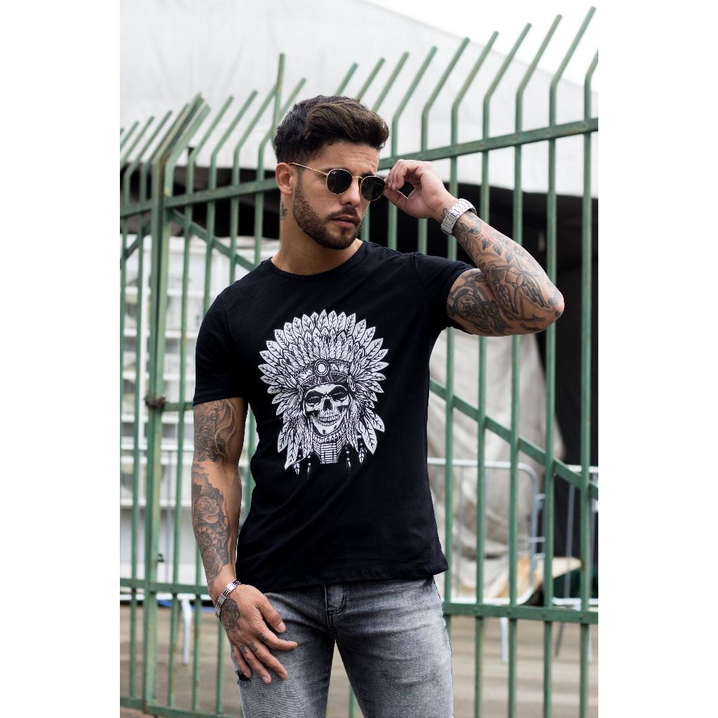 Camiseta Masculina Indio Americano - Estampa de Índio Americano - 100% Algodão Premium