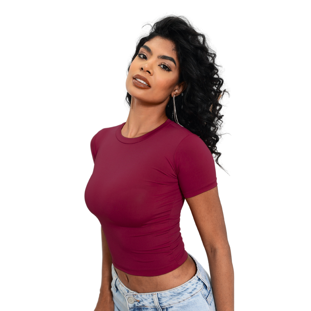 Baby Tee Feminina - Blusa Slim Fit Manga Curta Blusa de Compressão Várias Cores