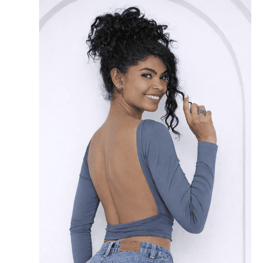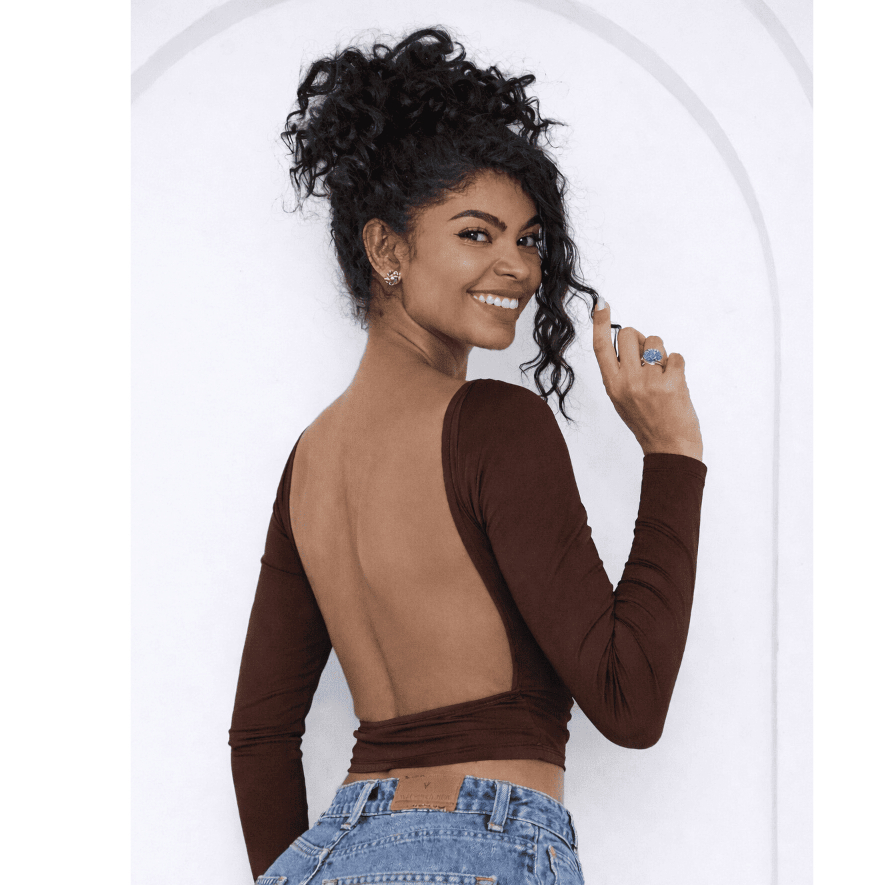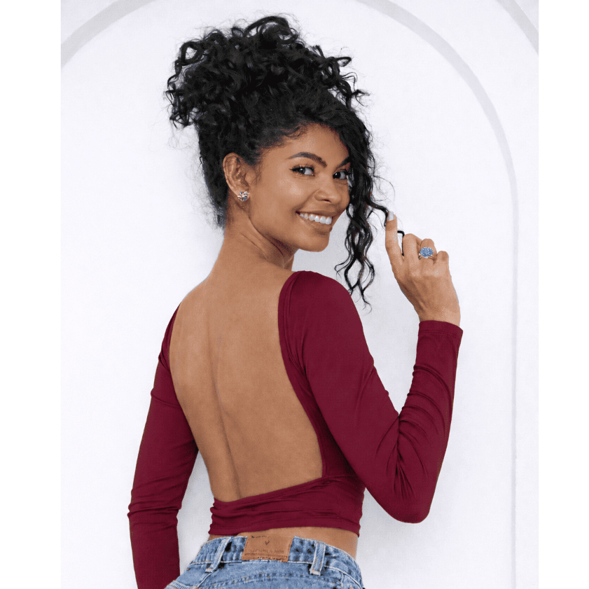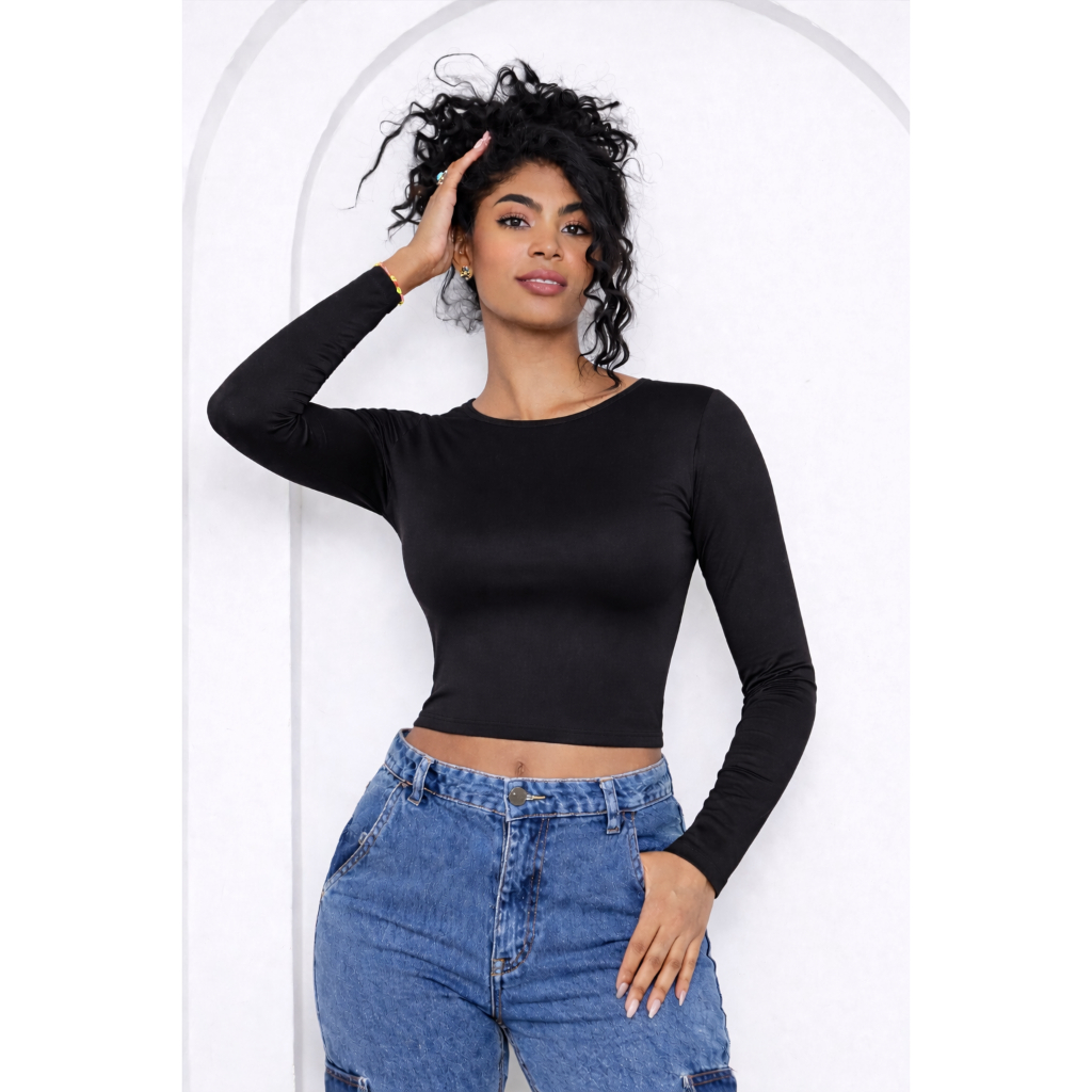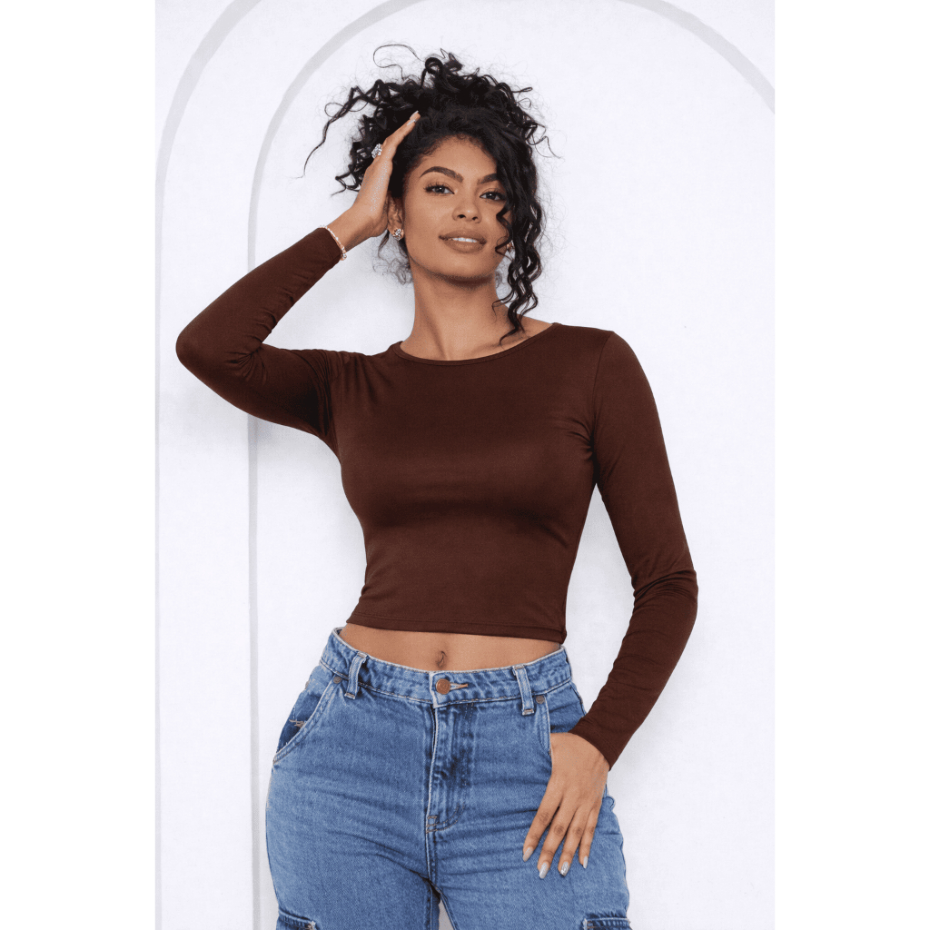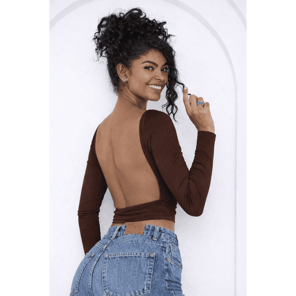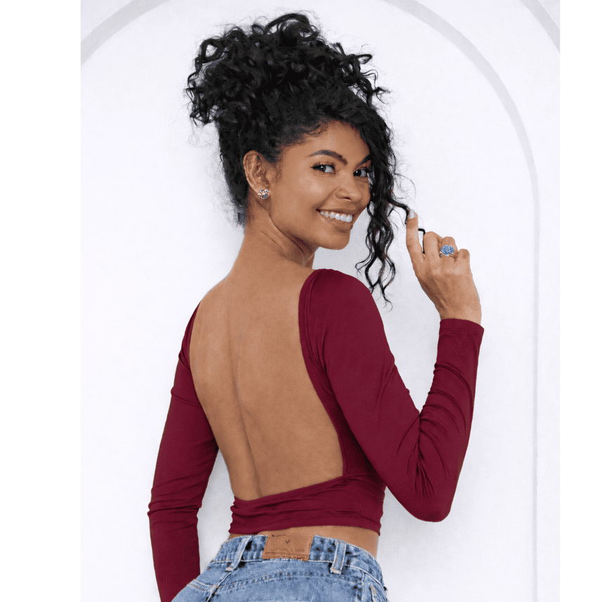 Blusa com Parte de Trás Aberta e Mangas Compridas - Blusa de Manga Longa Com as Costas Abertas