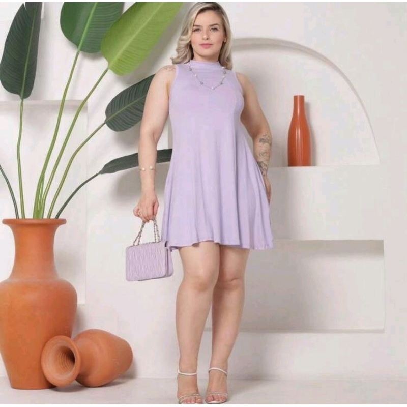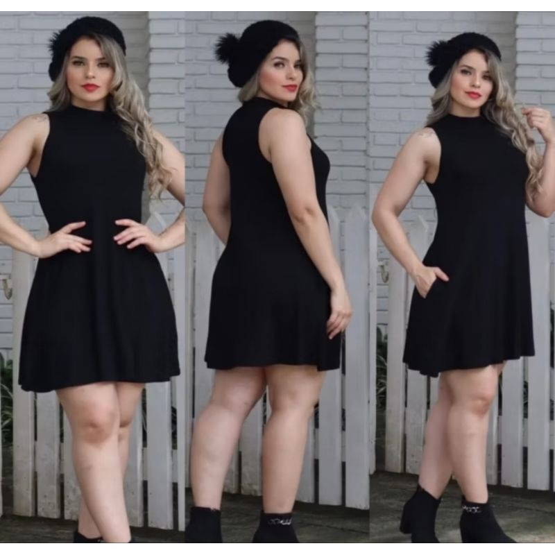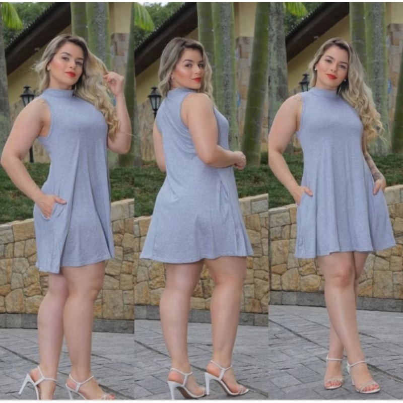 Vestido Feminino Rodado Curto Gola Alta Com Bolso Casual Viscolycra Premium Soltinho Tendência
