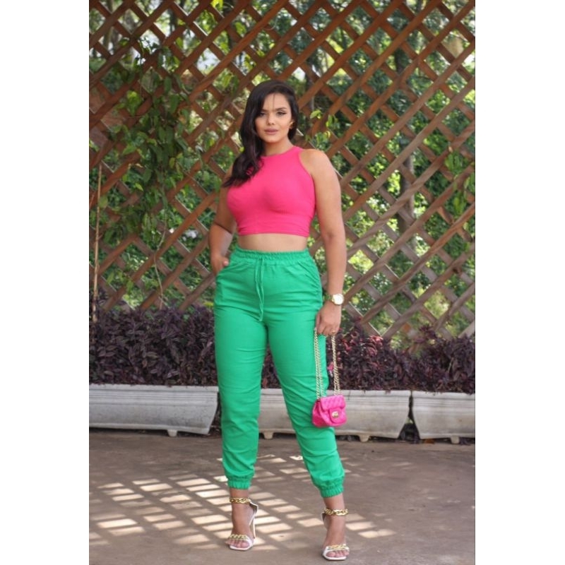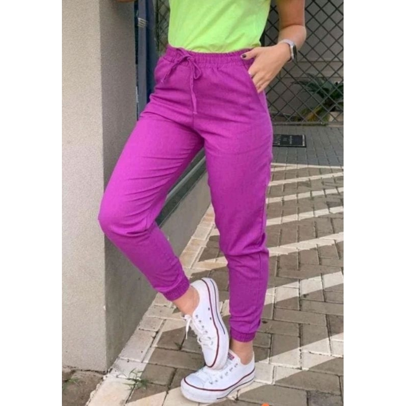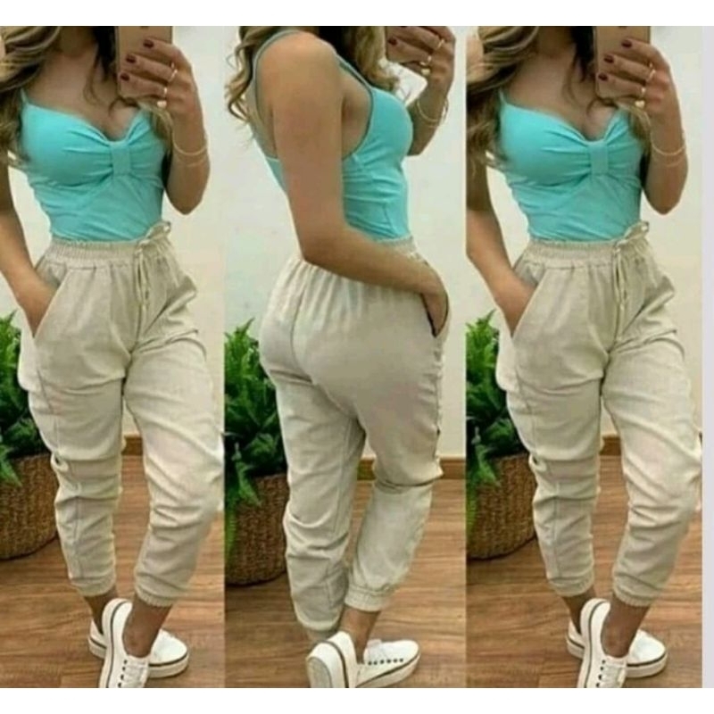 Calça Jogger Feminina de linho com Cordão Moda Instagram Blogueira Tendência