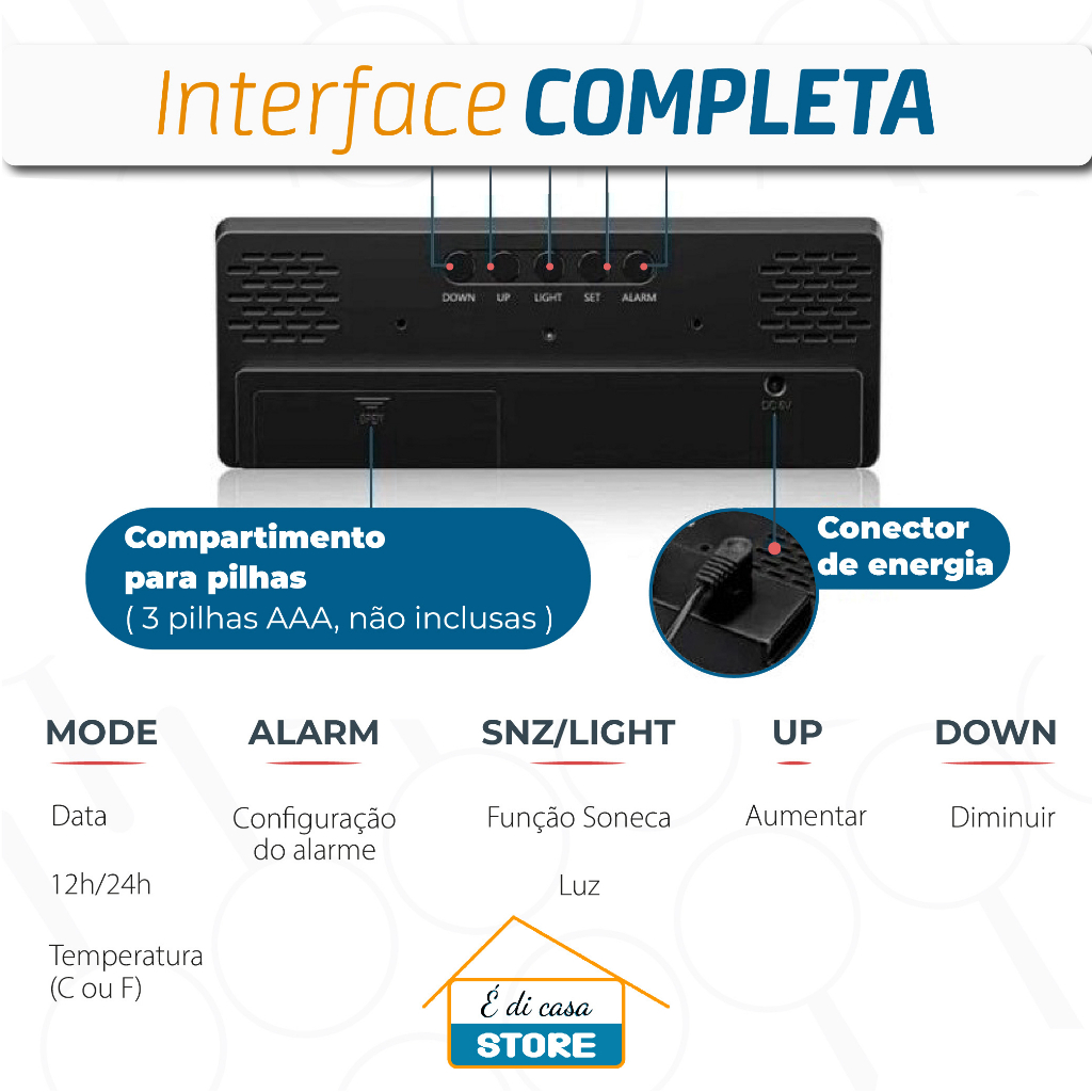 Relógio de Mesa Digital Full Led Inteligente Com Despertador Alarme Temperatura e Soneca