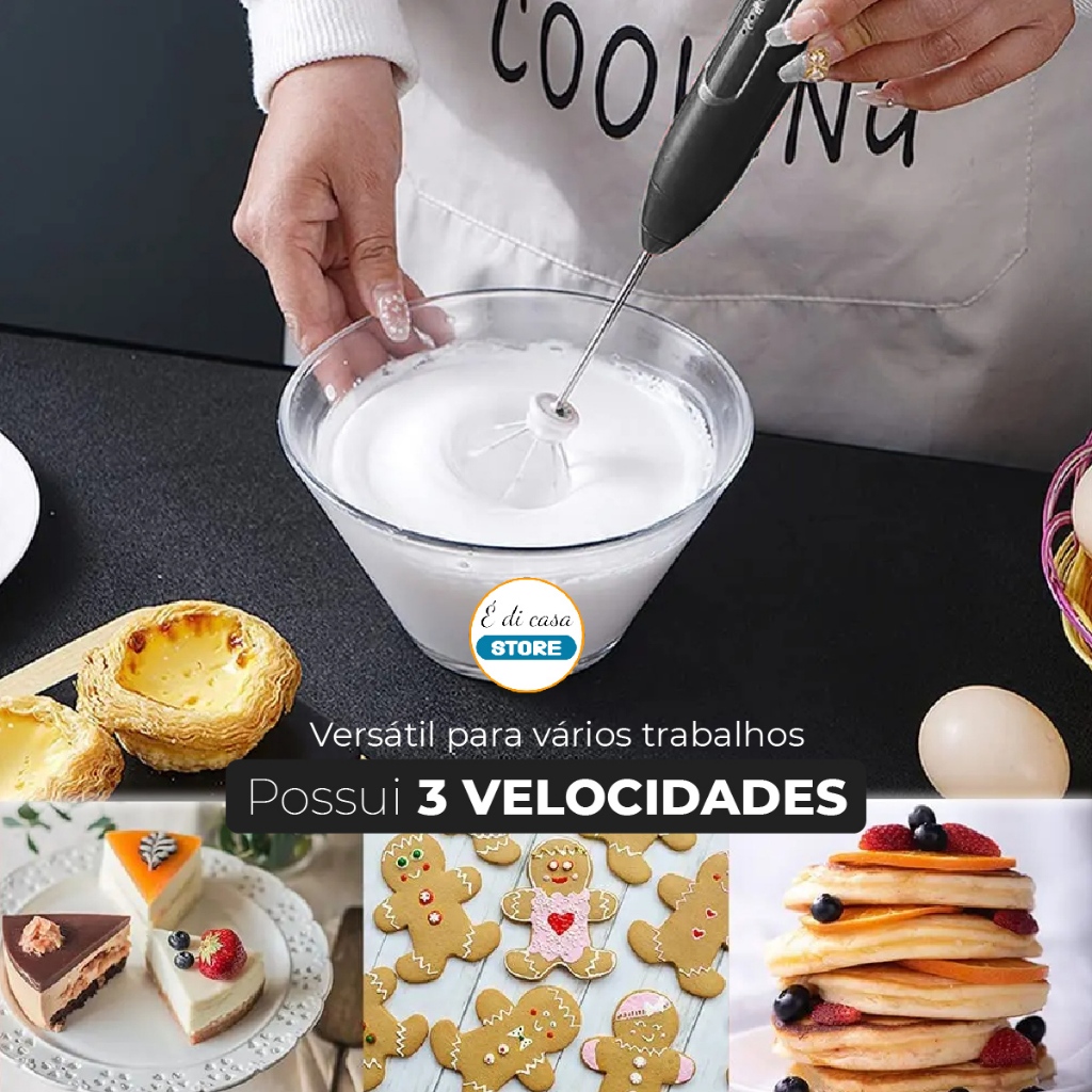 Batedor Misturador Mixer Elétrico para Bebidas Leite Café Clara de Ovo 2 em 1