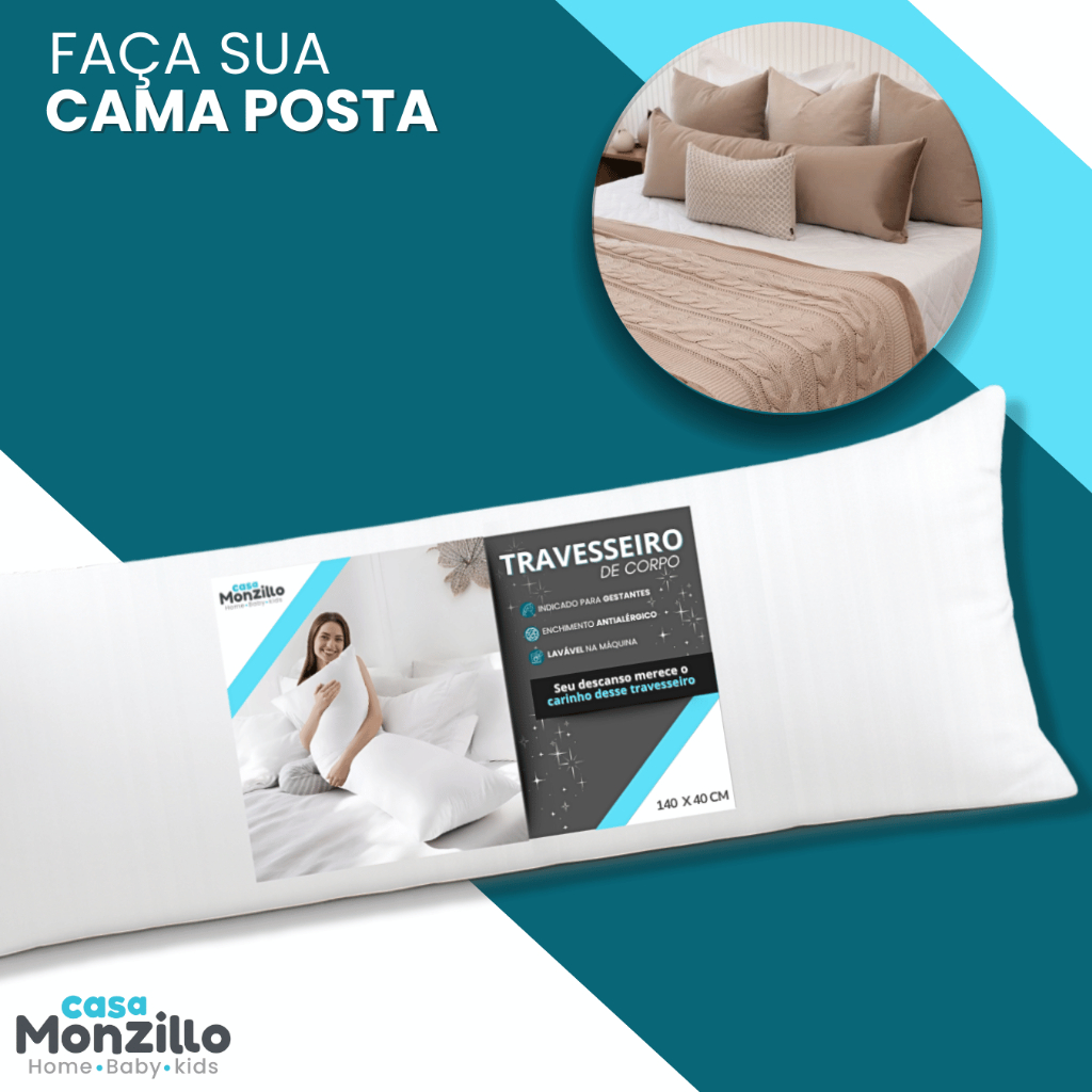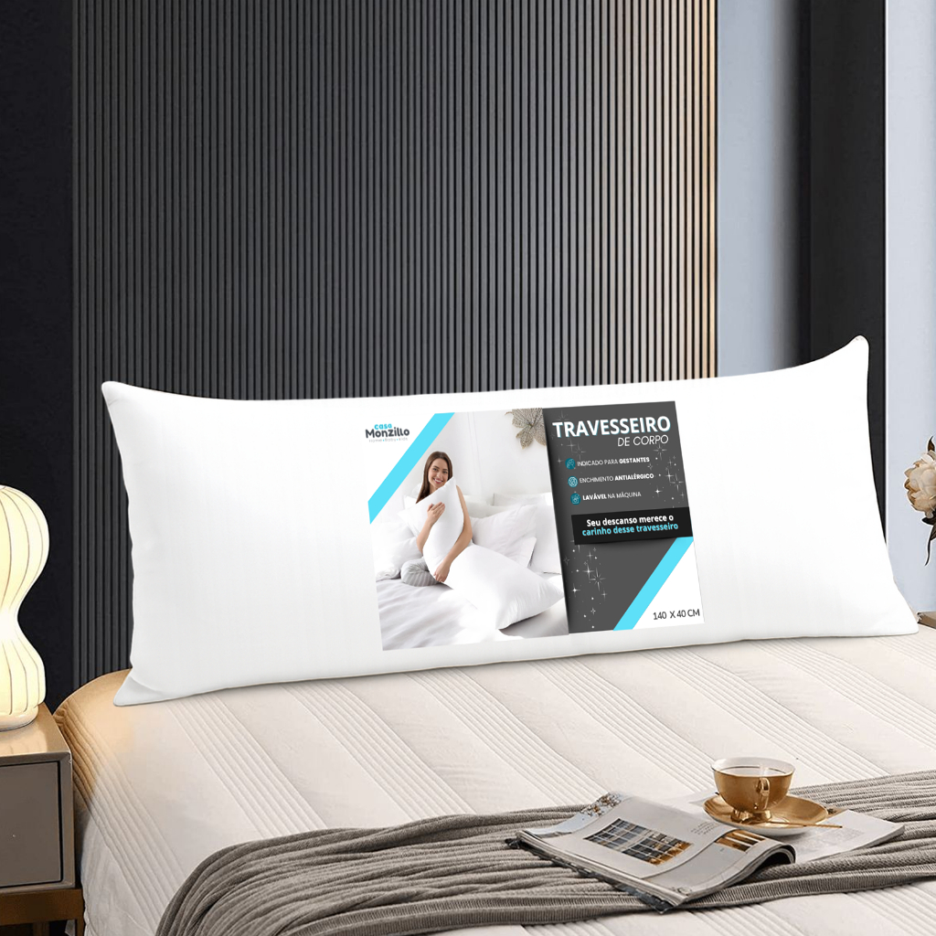 Xuxão Travesseiro de Corpo Antialérgico + Fronha 400 Fios Com Zíper