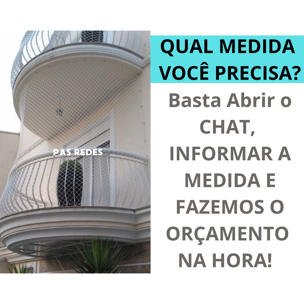 1,20 x 1,20 Kit Completo Rede Tela De Proteção Para Sacadas Janelas Gatos Crianças - Diversas Medidas