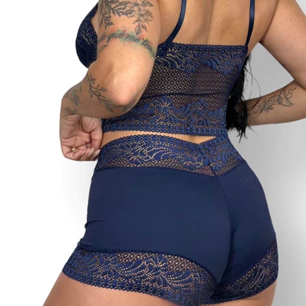 Short Doll Baby Doll Pijama luxuoso: Conforto e Estilo em Microfibra com Renda – Cropped Sem Bojo - 019