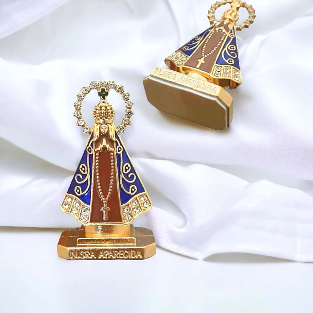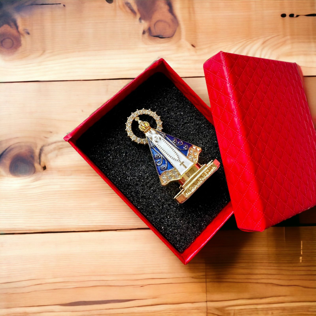 Nossa Senhora Aparecida Para Painel De Carro Pequena Strass com caixa presente