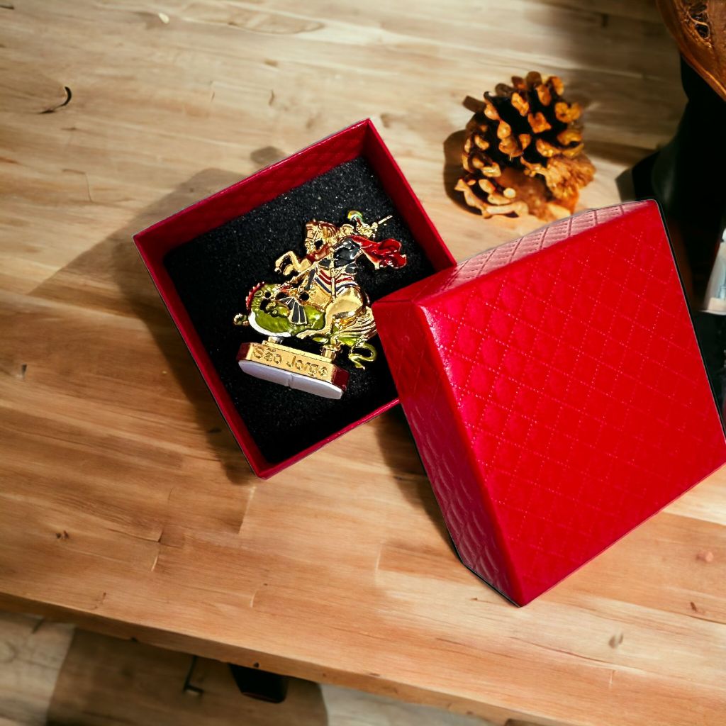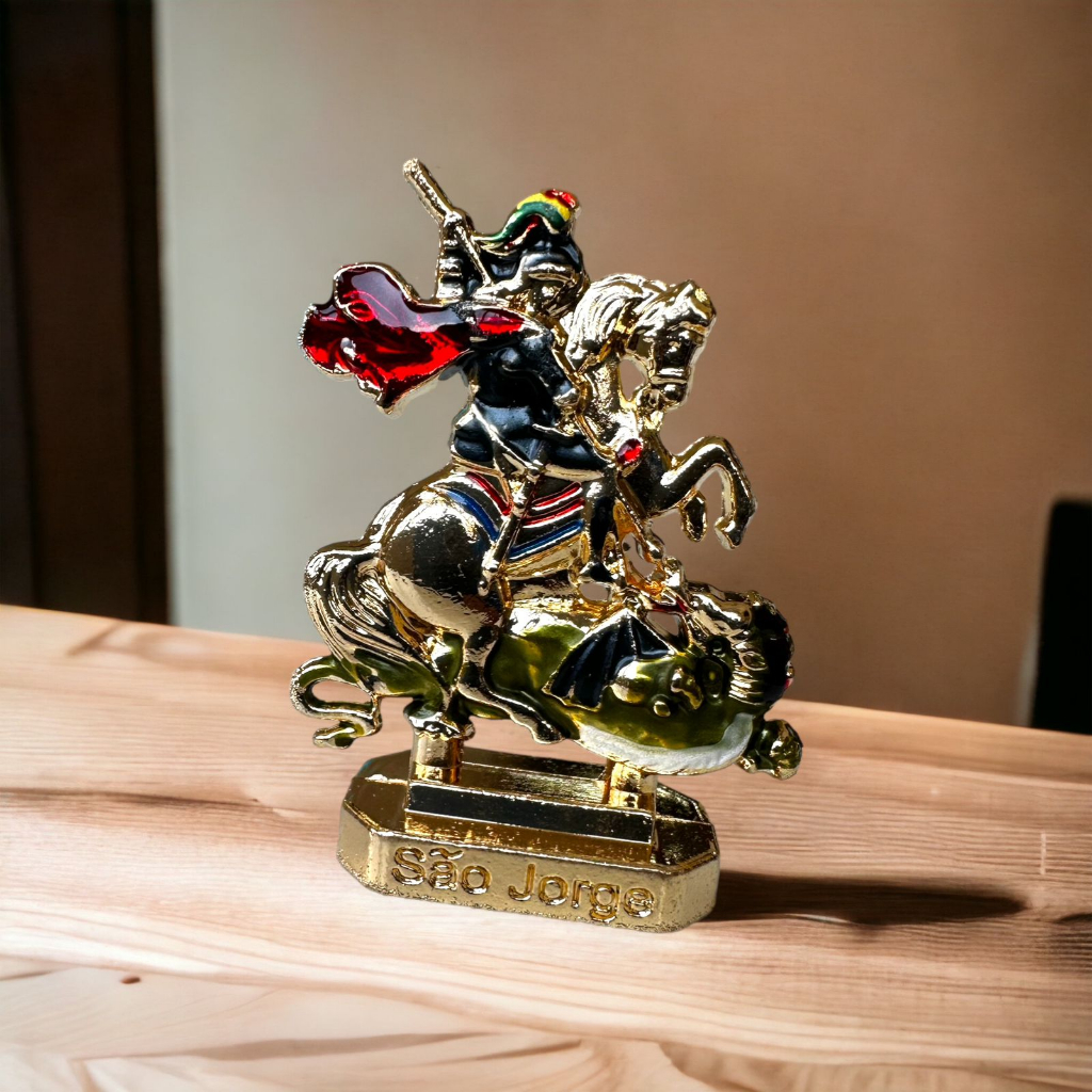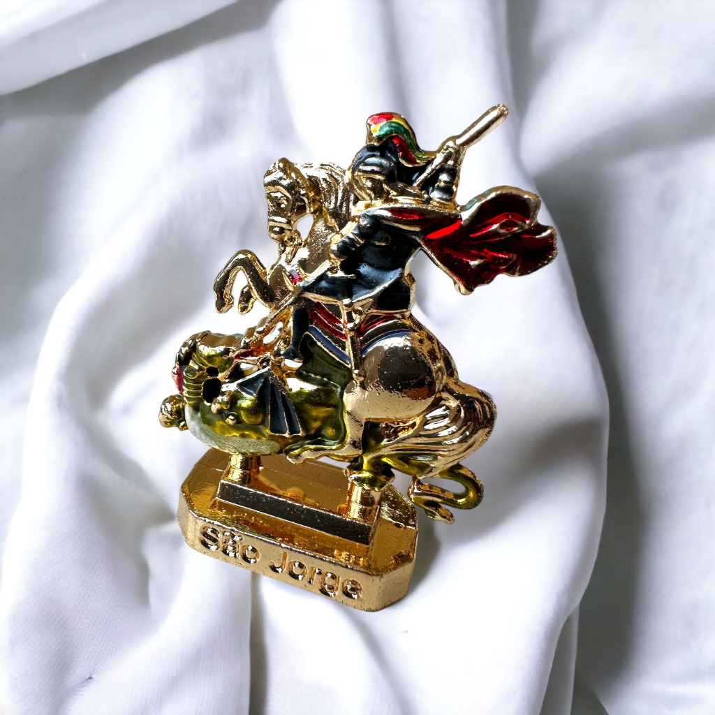 Imagem São Jorge Cavalo Metal Dourado Para Painel De Carro Strass Presente lembrancinha