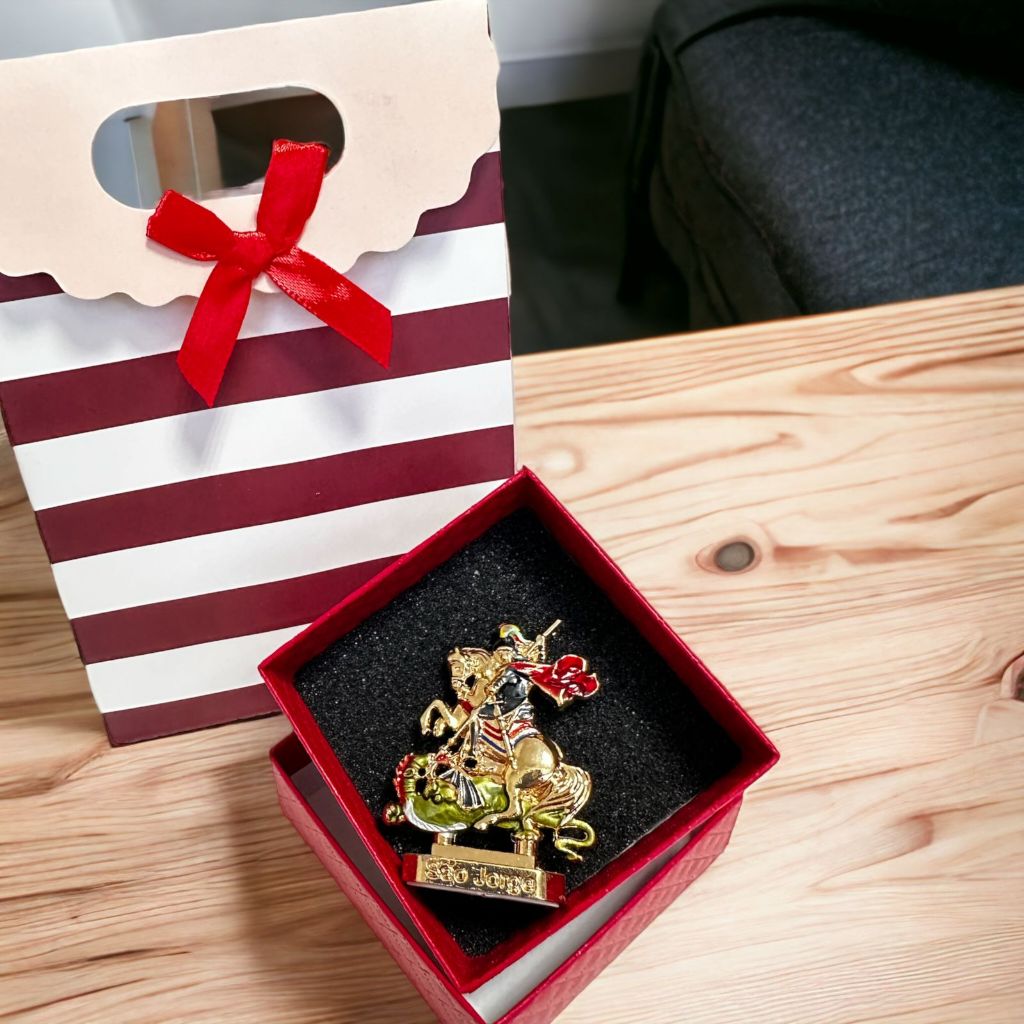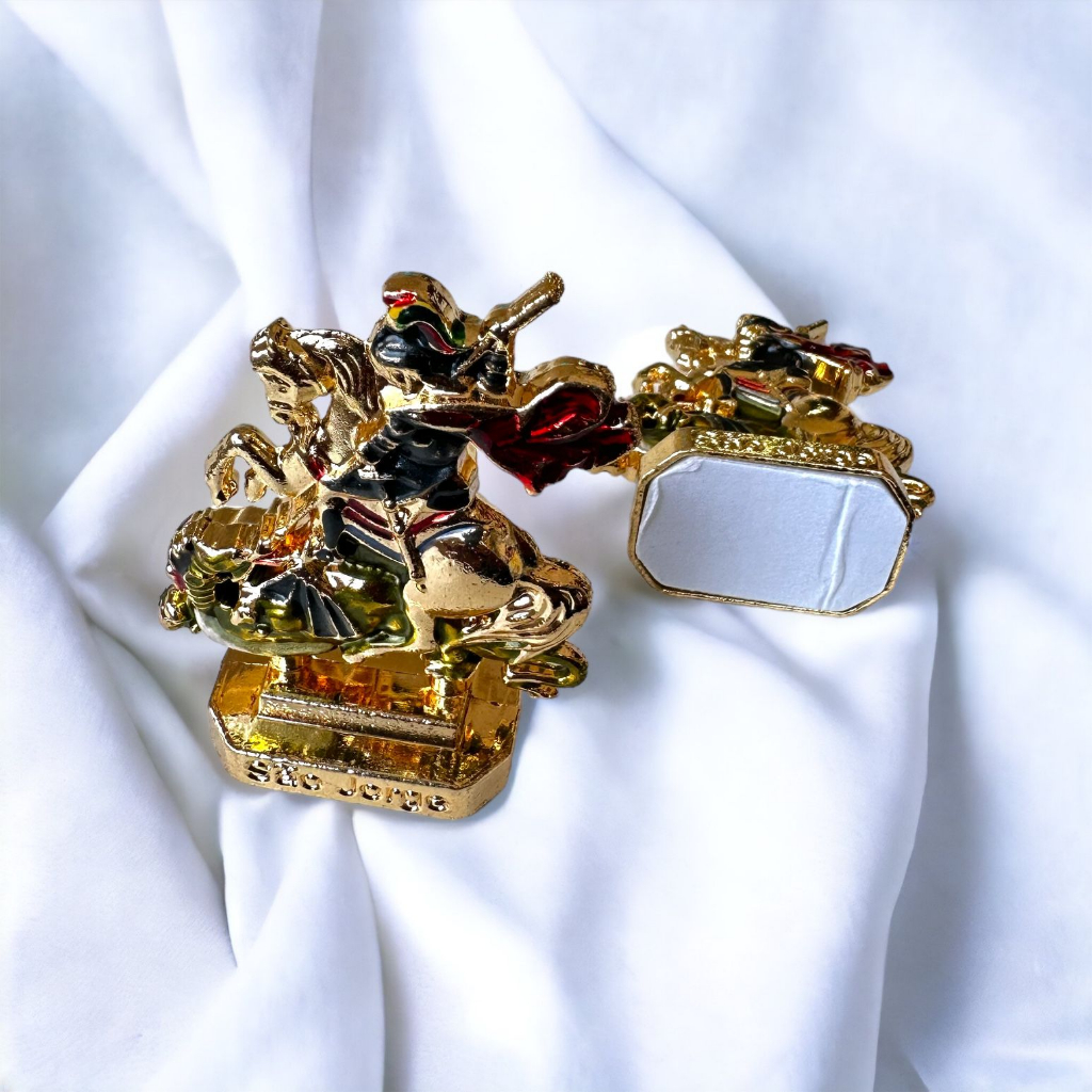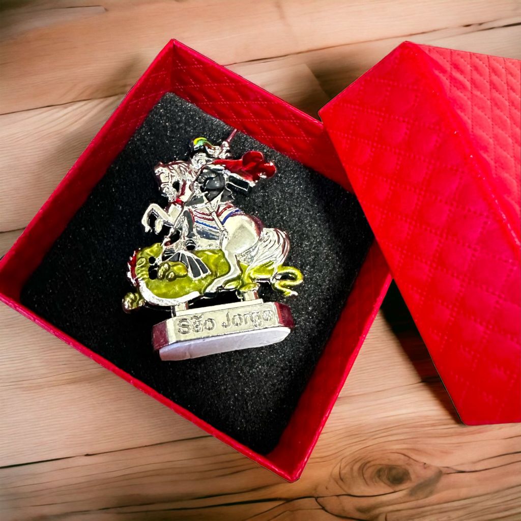 Imagem São Jorge Cavalo Metal Dourado Para Painel De Carro Strass Presente lembrancinha