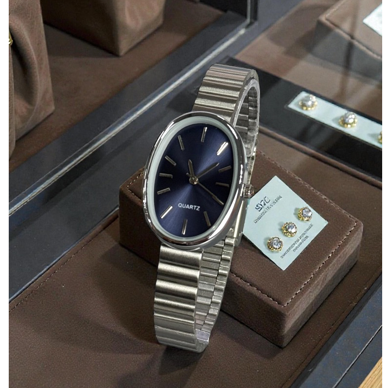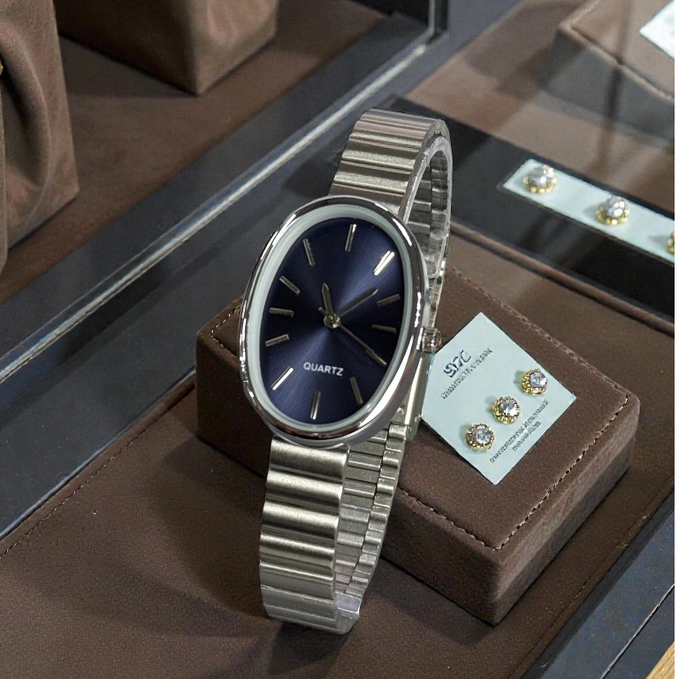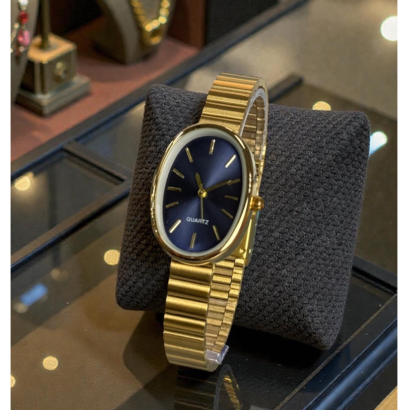 Relógio Feminino Oval Aurum Blue Quartz | Pulseira em Aço Inoxidável | Elegante e Moderno Analógico