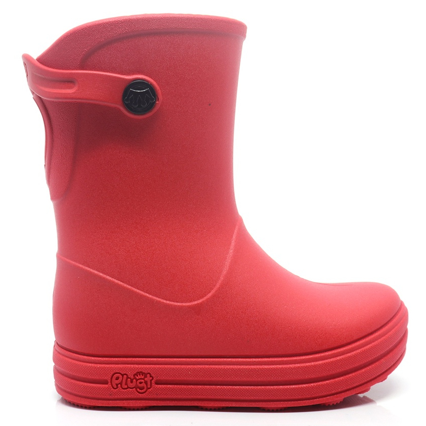 Galocha Bota Infantil Plugt Menina E Menino Confortável Leve Básica Lisa Vermelho Impermeável