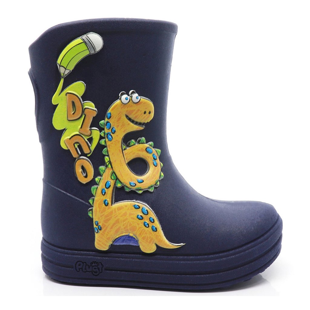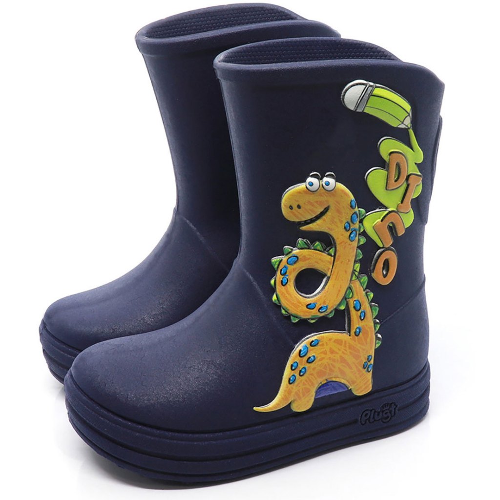 Galocha Bota Infantil Plugt Menino Confortável Dinossauro Escolar Azul Marinho Laranja