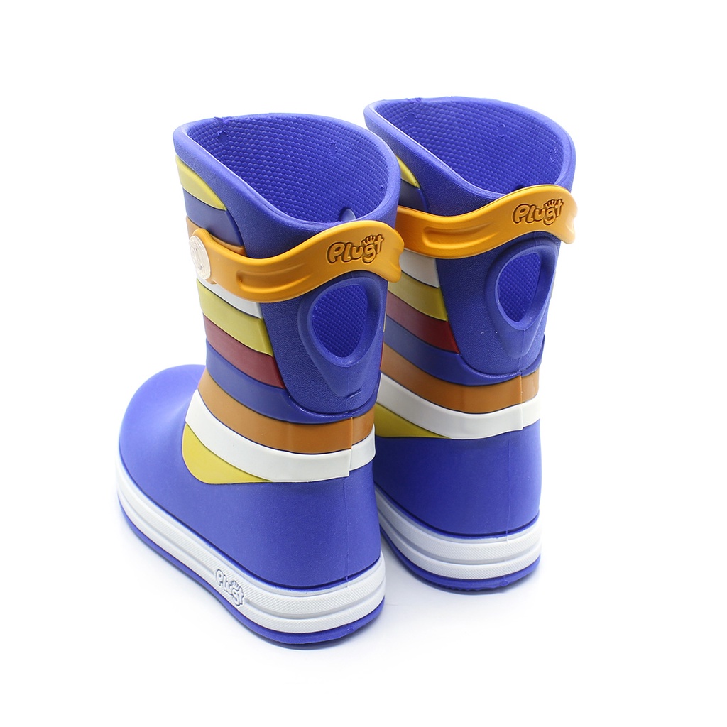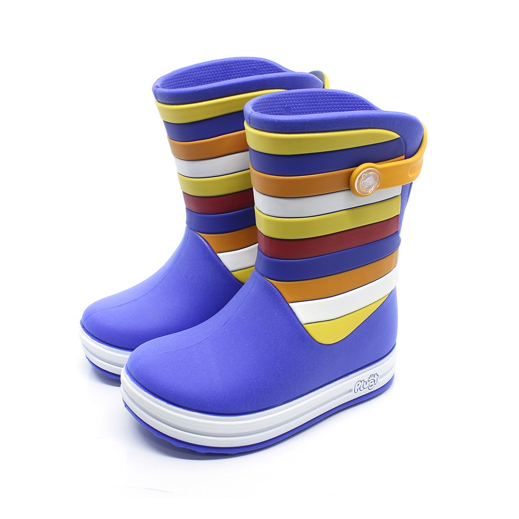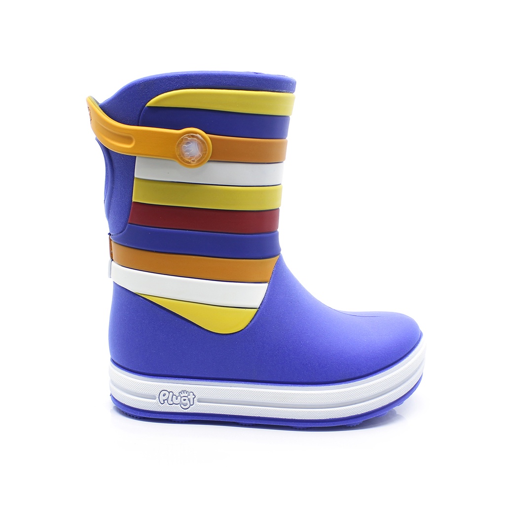 Galocha Bota Infantil Plugt Menino Listras Azul Botinha de Chuva Confortável Macia Leve Presente