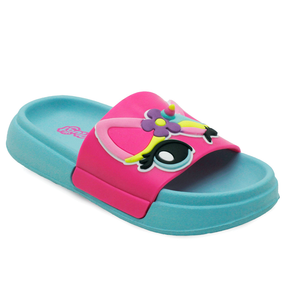 Chinelo Slide Infantil Menina Plugt Unicórnio Macio EVA Nuvem Leve Confortável Pink Algodão