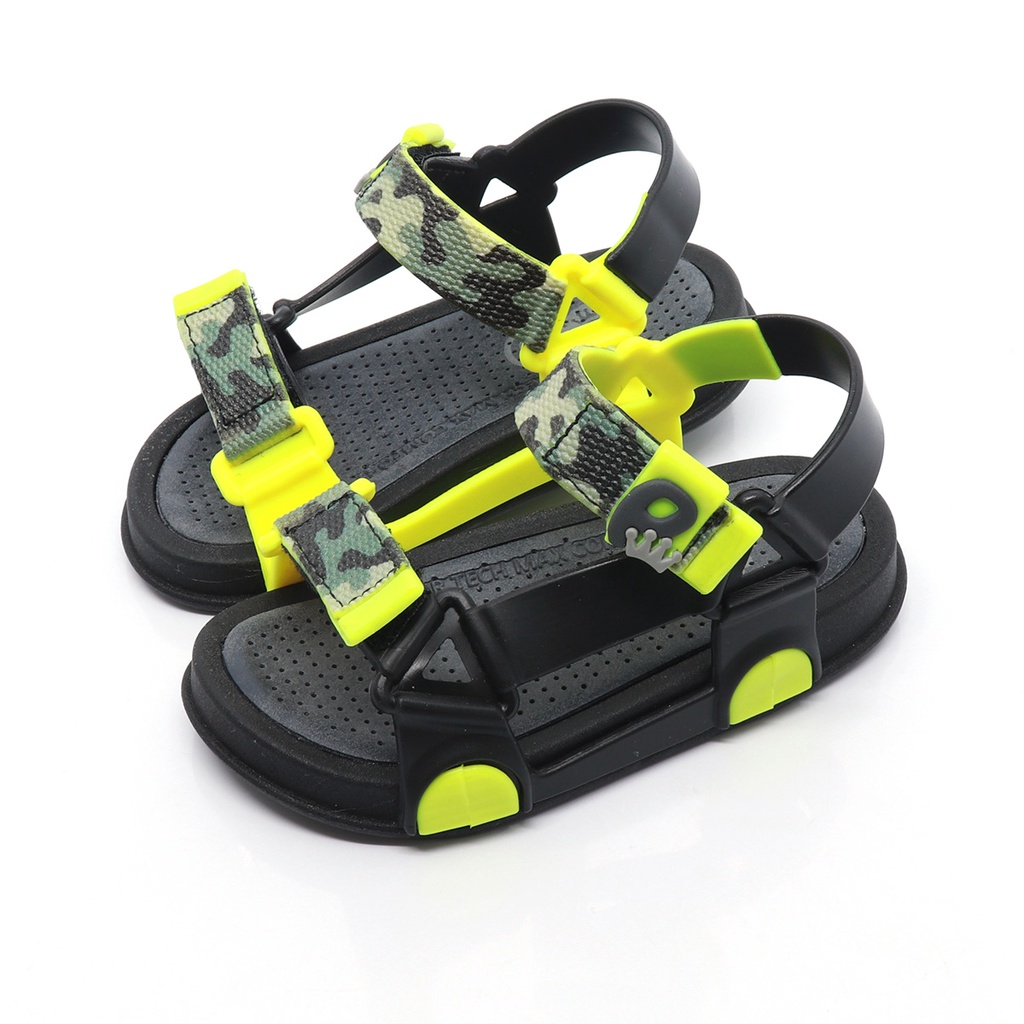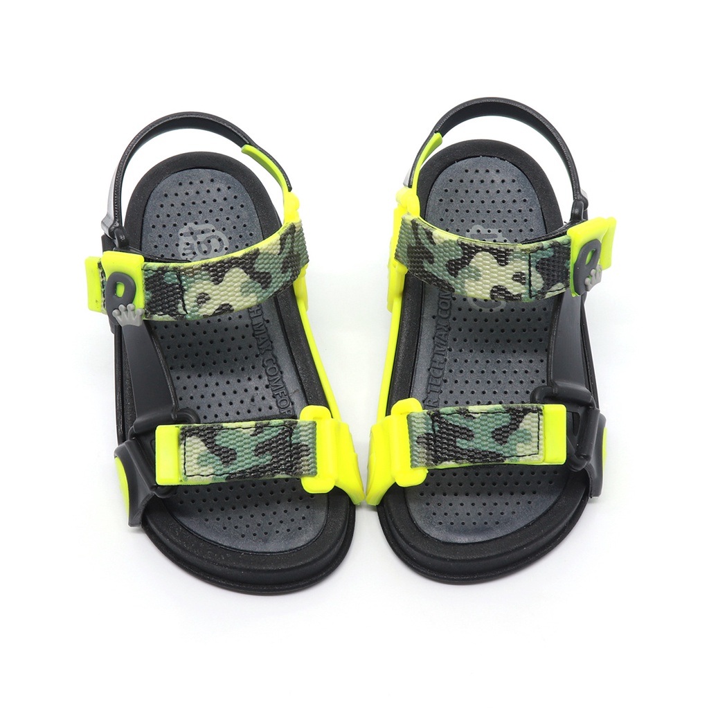 Sandália Papete Infantil Plugt Menino Confortável Camuflado Preto Amarelo Neon