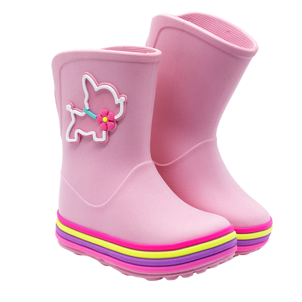 Galocha Infantil Menina Plugt Acqua Cachorrinha Rosa Balé Colorida Enfeite Divertida Confortável