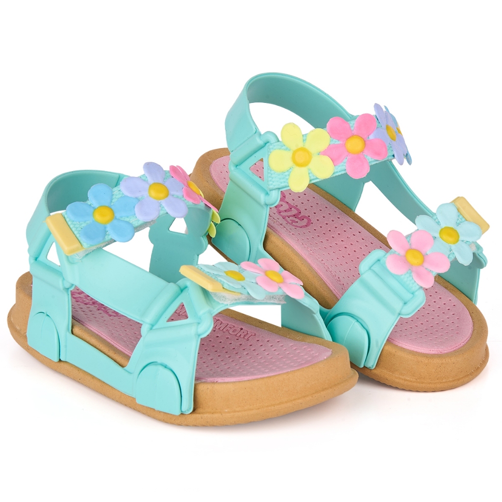 Sandália Papete Infantil Menina Plugt Bora Bora Flores Colorida Confortável Macia Antiderrapante