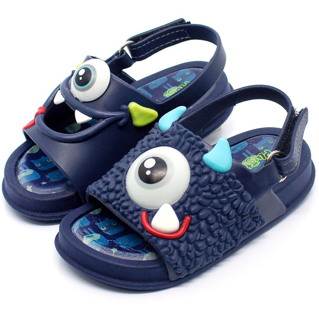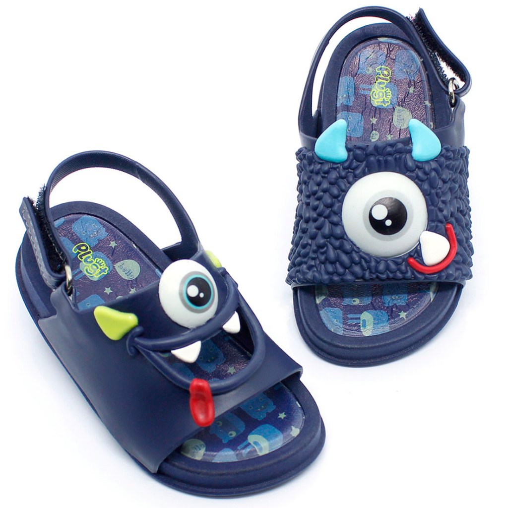Sandália Papete Infantil Plugt Menino Monstros Azul Marinho Divertido Macio Leve Original