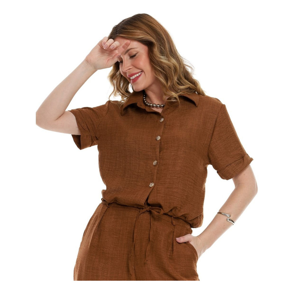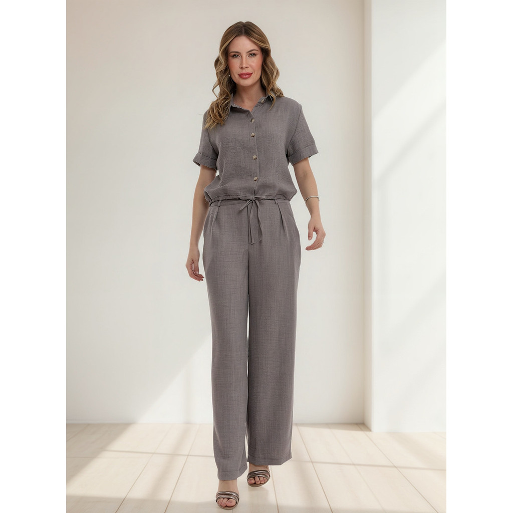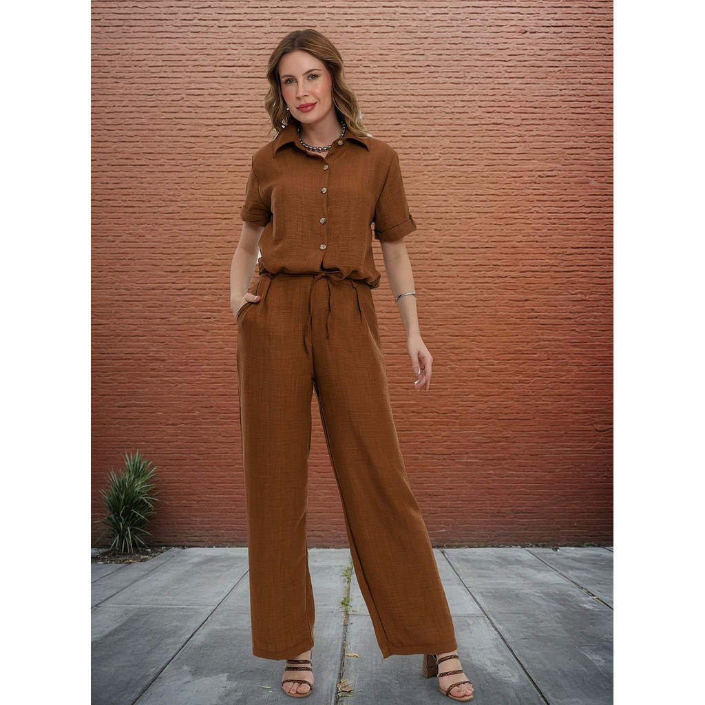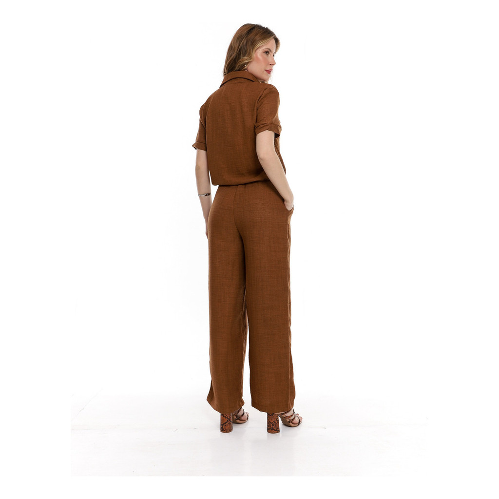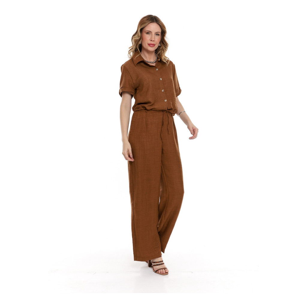 Conjunto Dunatwil Blusa Manga Curta De Botão E Calça