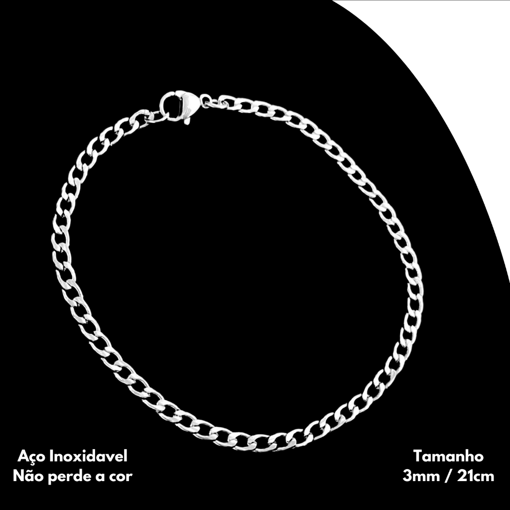 Colar Corrente Fininha Grumet Italiana 1x1 + Pulseira Masculina Fina Aço Inoxidavel