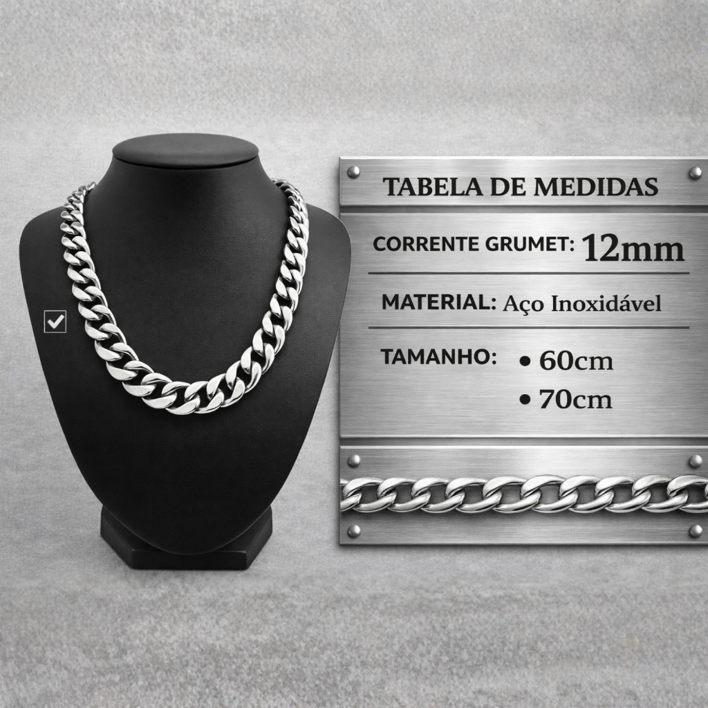Corrente Grumet Masculino Feminino Aço Cirurgico Grossa 12mm