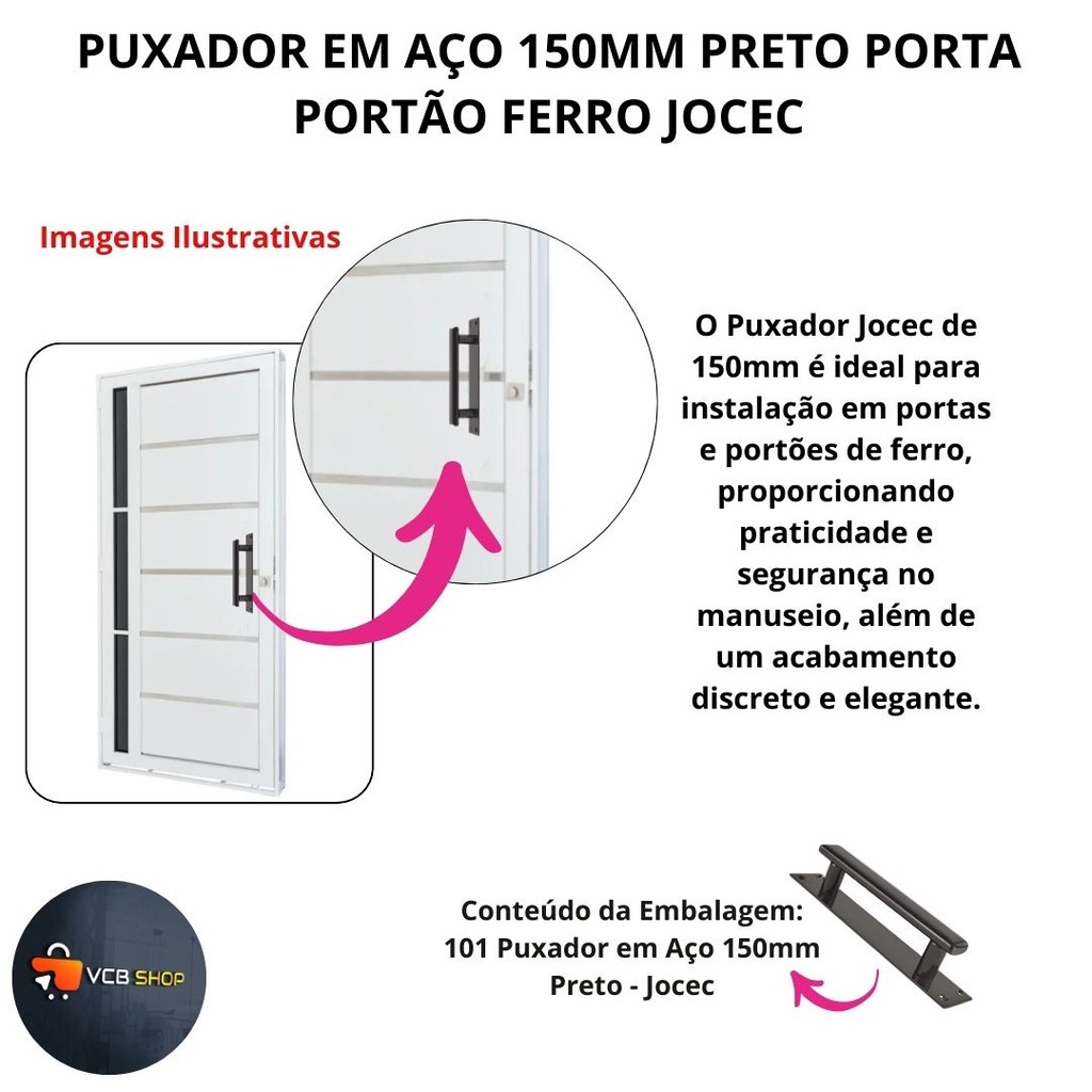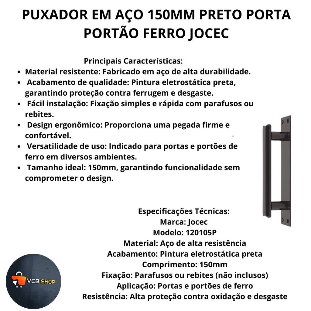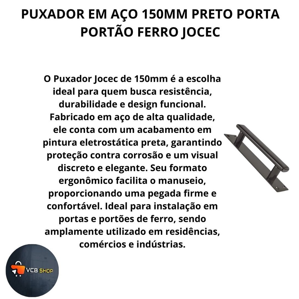 PUXADOR EM AÇO 150MM PRETO PORTA PORTÃO FERRO JOCEC