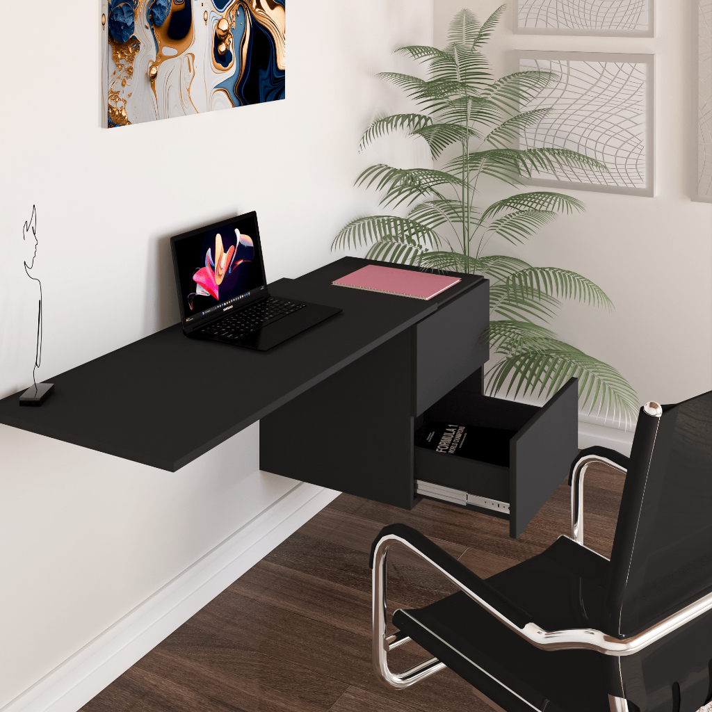 Mesa Para Computador Suspensa Escritório Escrivaninha com Gavetas Mdf