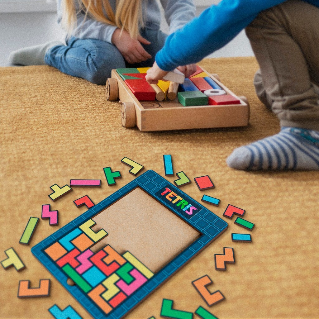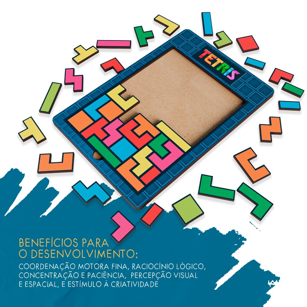 Jogo de Encaixe Tetris em MDF Branco – Brinquedo Educativo e Criativo