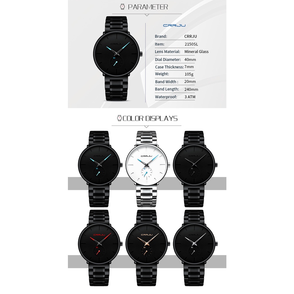 Relógios Masculinos CRRJU Luxo Marca Original Casual à prova d'água Esporte Quartzo Relógio 2150SLX