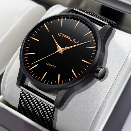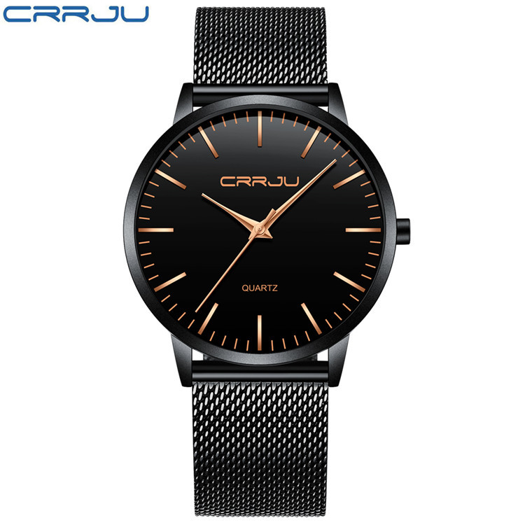 CRRJU Relógio Masculino Marca Original Todos Os Pretos Moda Simples Casual Quartzo Analógico Aço Inoxidável Impermeável 2117 X