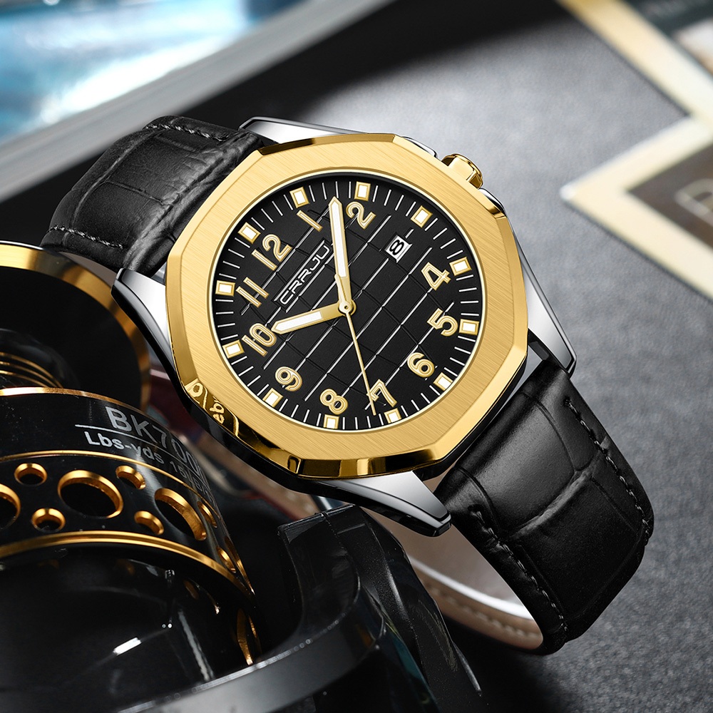 CRRJU Estilo casual top Moda De Luxo Tendência original Autêntico design Simples Pulseira De Couro Luminosa Mãos De Quartzo Relógio Masculino À Prova D'água 5022 X