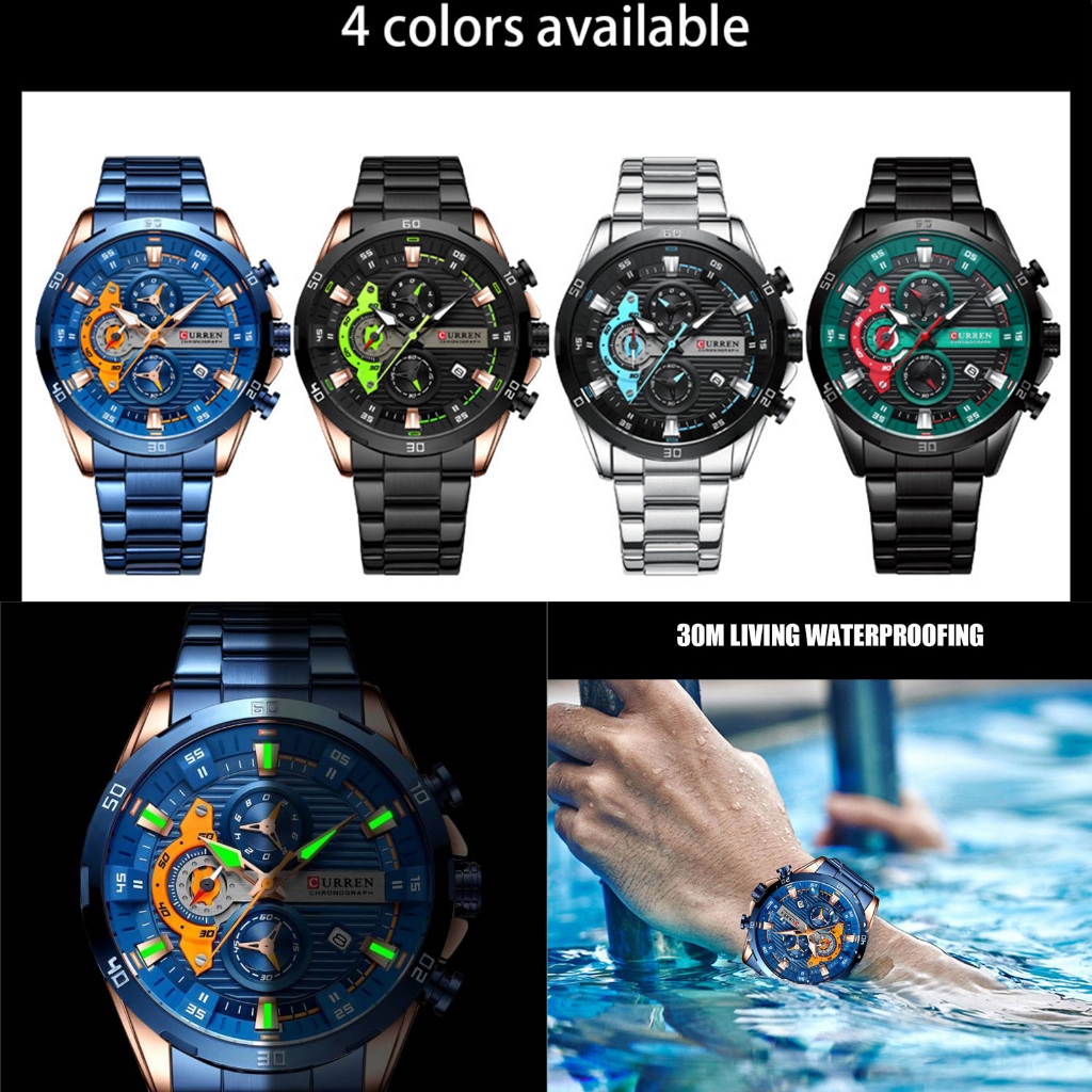 CURREN Relógios masculinos Moda de luxo Design exclusivo de mostrador Multifuncional à prova d'água Relógio de quartzo 8402 X