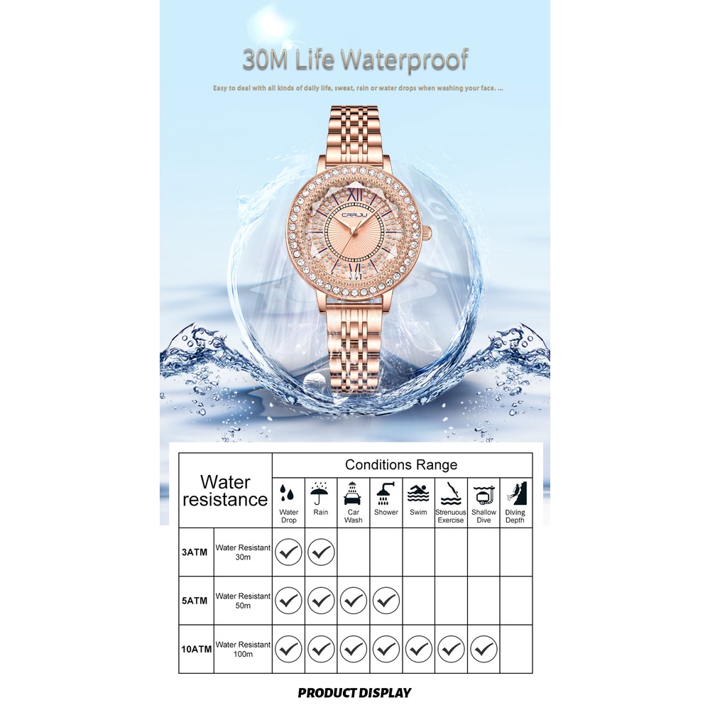CRRJU Relógio Original Feminino Discagem De Luxo Moda Simples Com Diamante Business Elegante Quartzo Aço Inoxidável À Prova D'água 5001