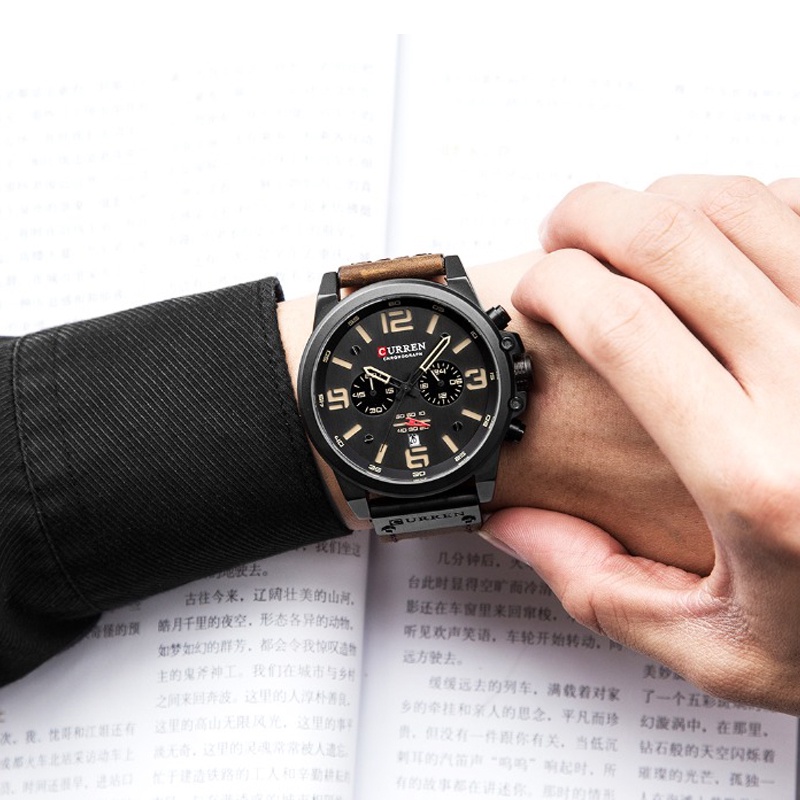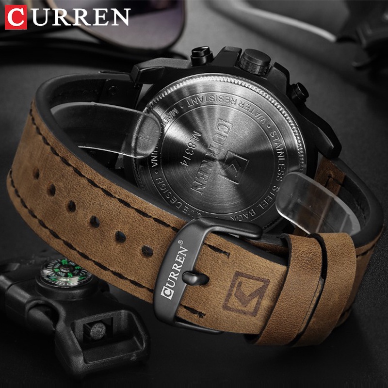 Curren Moeda Top Luxo Marca De Couro Militar Esportivo Masculino À Prova D'água Quartzo Chronograph Relógio Data Moda Casual 8314X