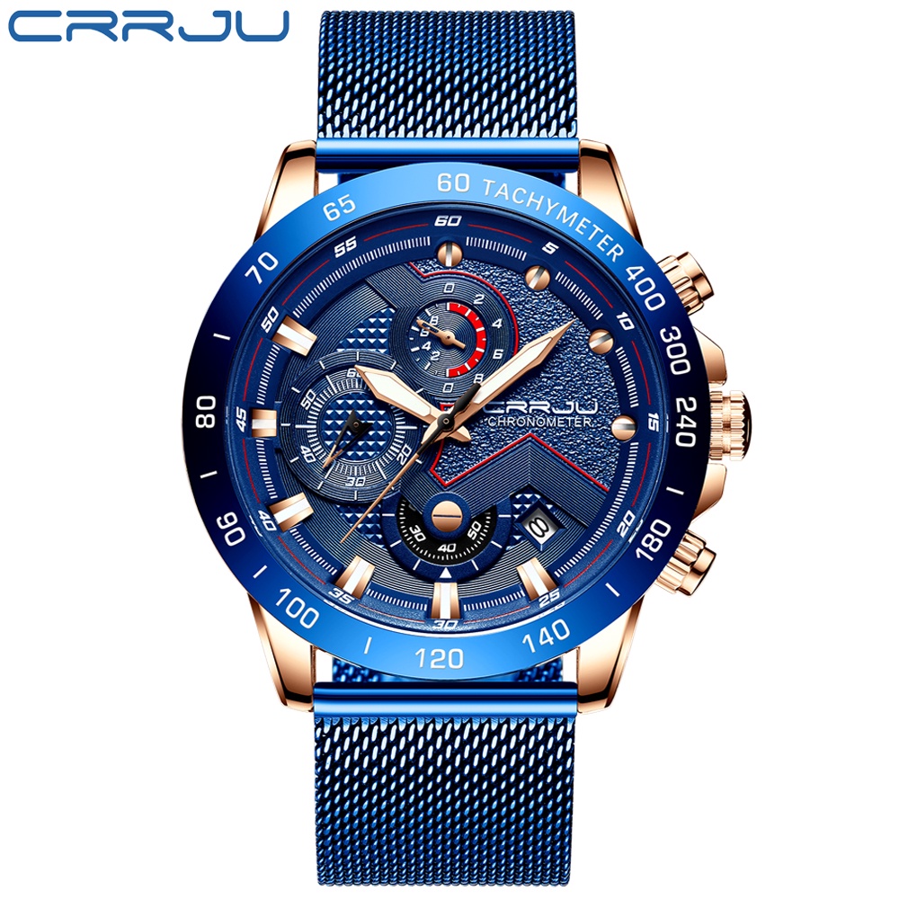 CRRJU Relógios Masculinos Marca Original Multifuncional Casual Luxo Analógico Quartzo Aço Inoxidável 2280 X