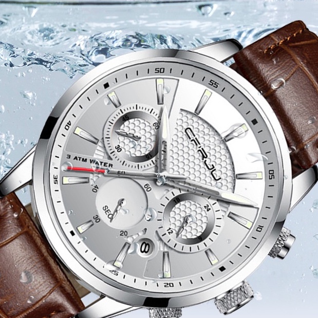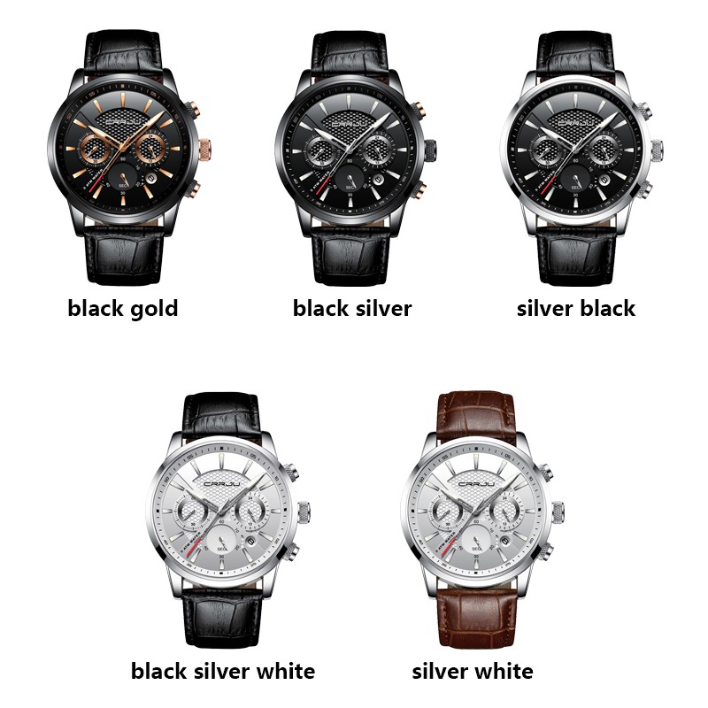 CRRJU Relógio masculino cronógrafo à prova d'água Relógio casual de quartzo em couro 2212