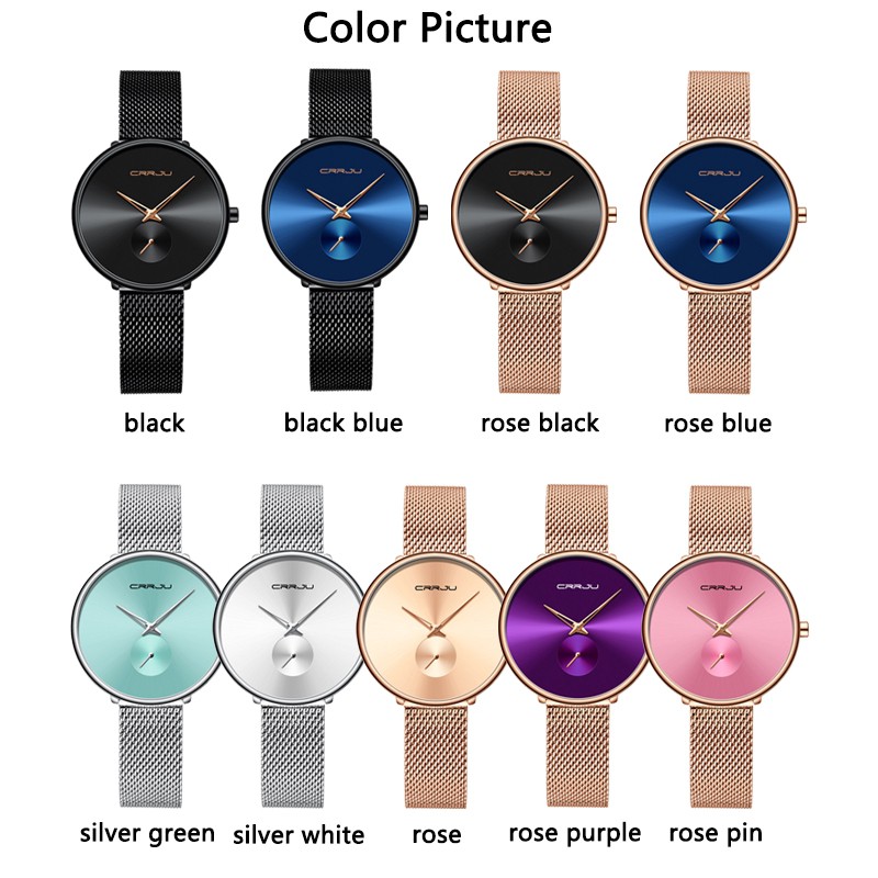 CRRJU Relógio feminino Marca de luxo Top Fashion Quartz Aço inoxidável à prova d'água 2165