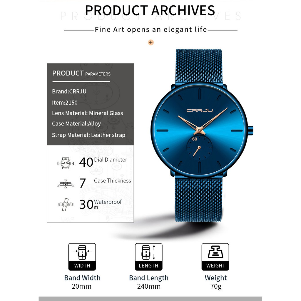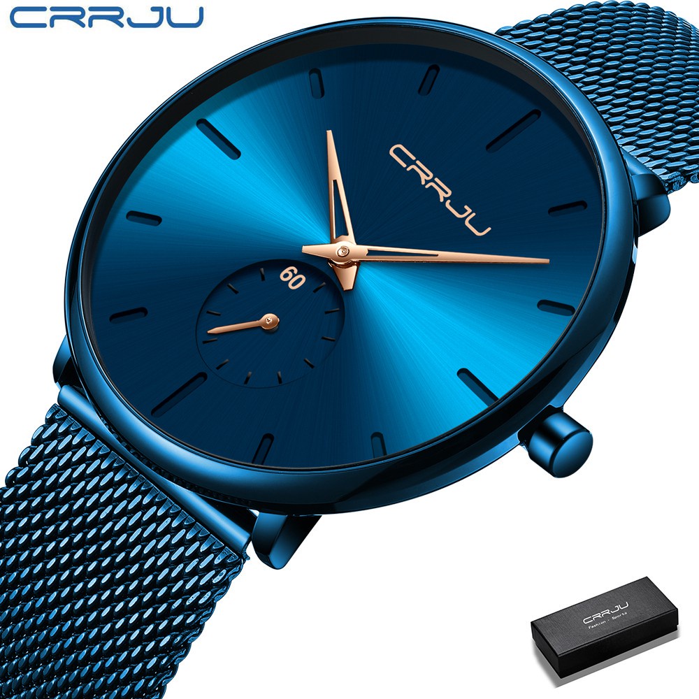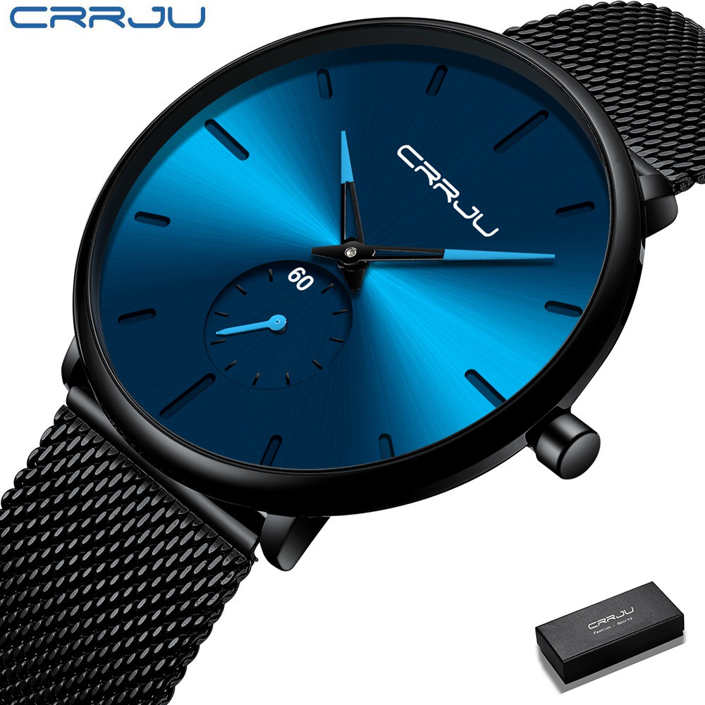 CRRJU Relógio masculino ultrafino à prova d'água Presente minimalista para homens 2150