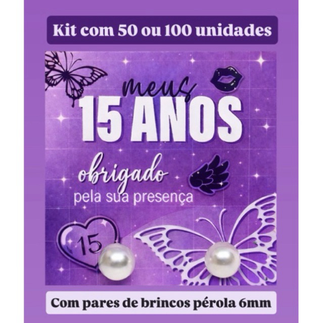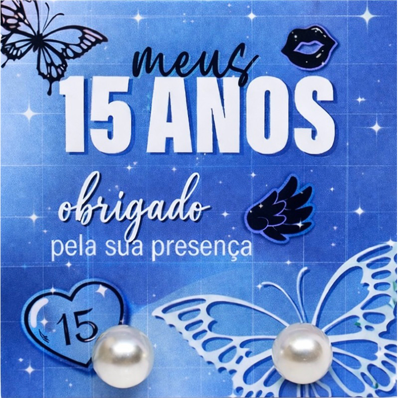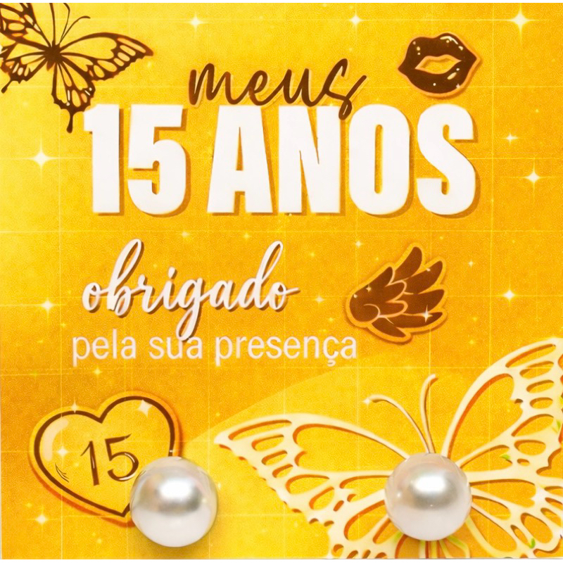 50 ou 100 Tags de 15 anos com brinco pérola 6mm. NÃO PERSONALIZAMOS. Mimo para convidados. Presente para convidados.