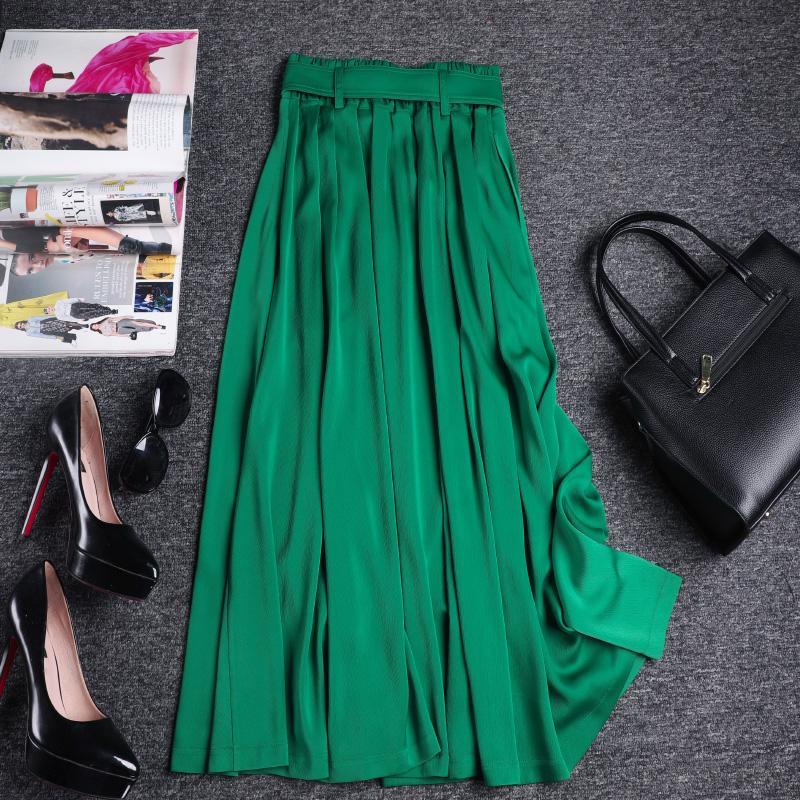 Verde Simples Sete Pontos Saia De Cintura Alta Fina Solta Meia Temperamento Em Trapézio Para Mulher