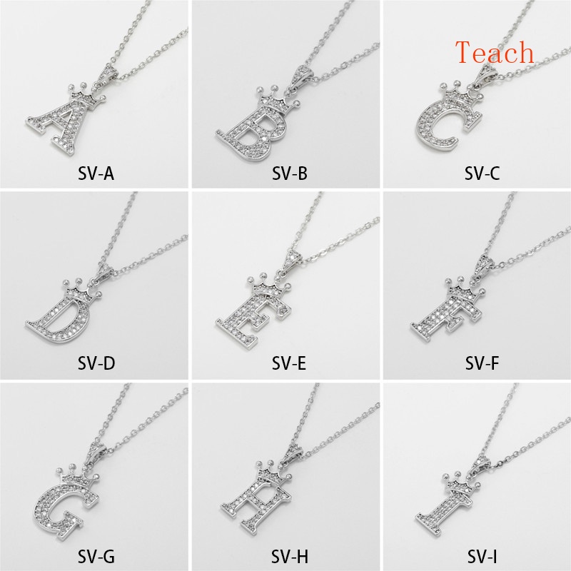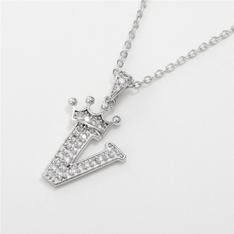 Iniciais Da Coroa 26 Cartas Colar Pingente De Prata Masculino E Feminino Zircônia Carta Corrente De Ligação Acessórios De Moda Jóias