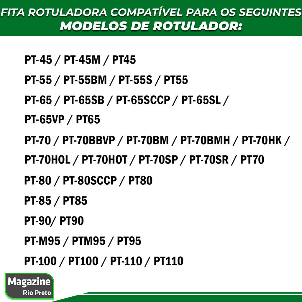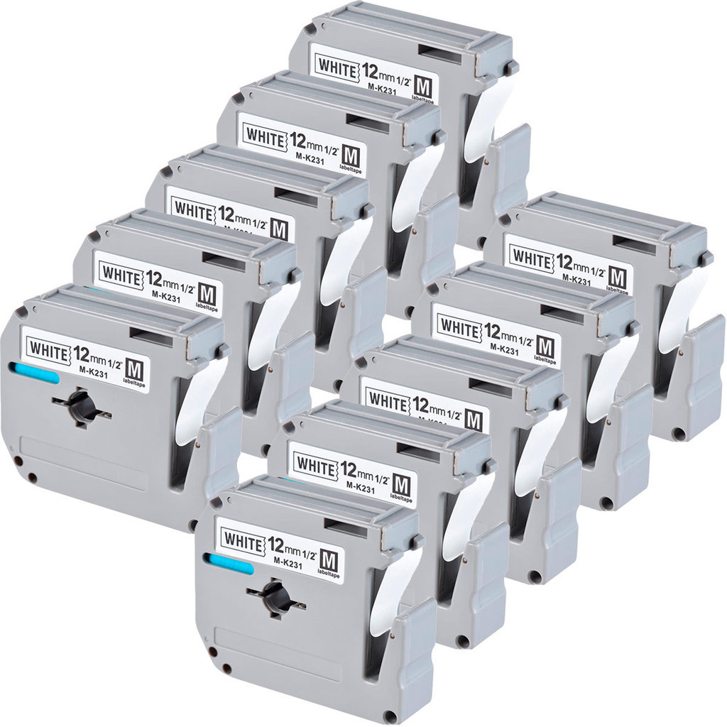 Kit 10x Fita Rotuladora Compatível MK 231 Branca 12mm x 8m Rotulador Pt-70 Pt-80 Pt-90