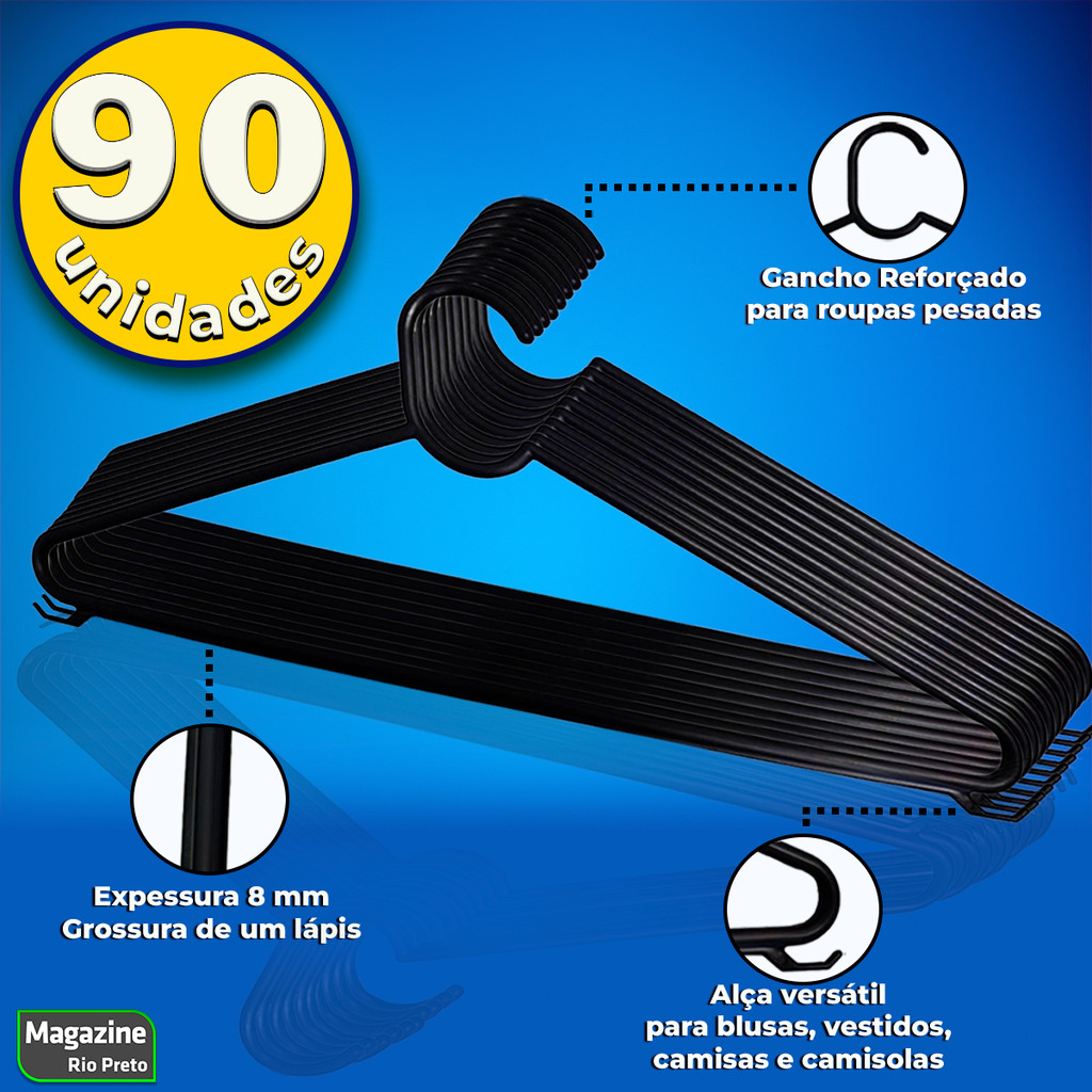 Kit Com 90 Cabides Premium Antideslizante Com Cavas Reforçado Tam Adulto