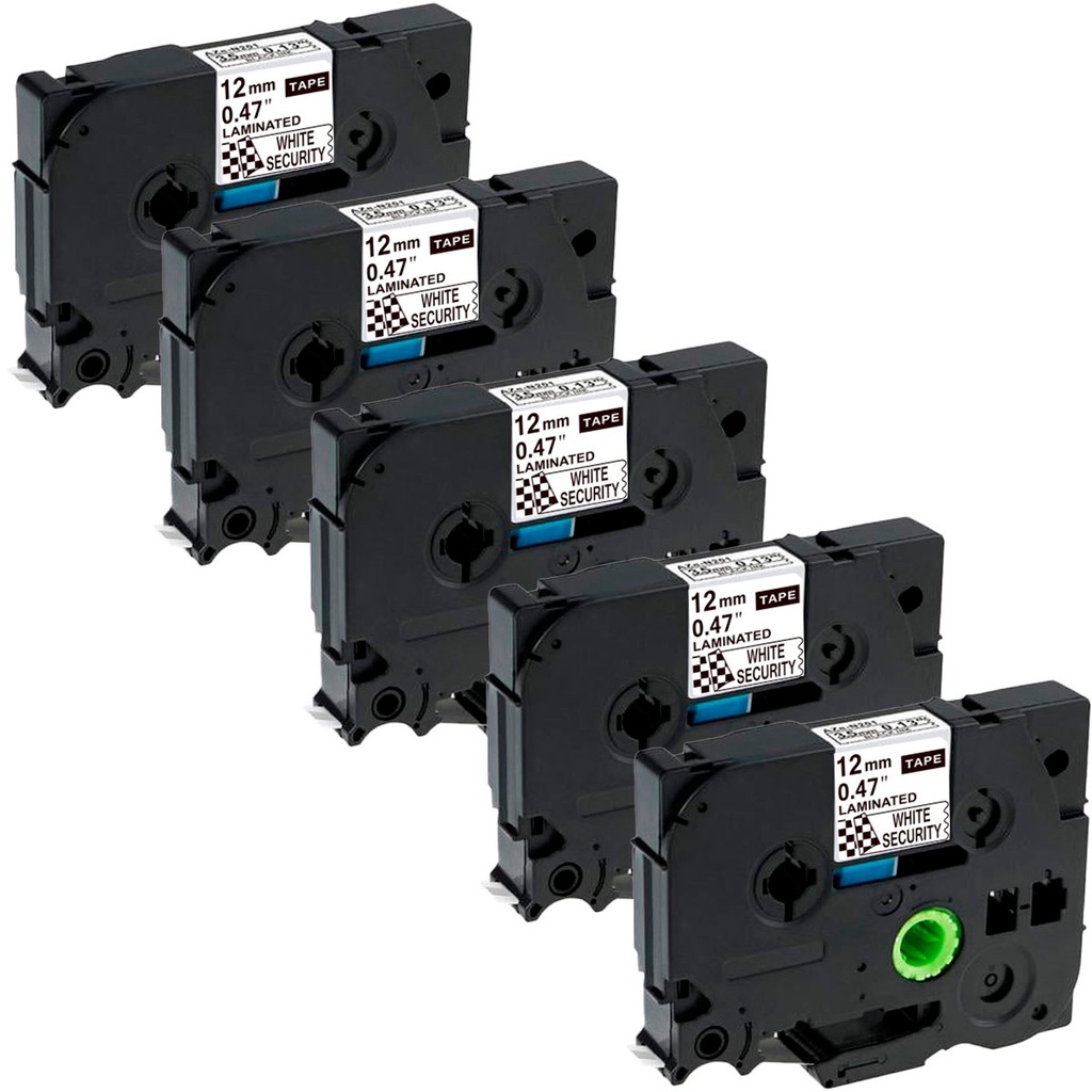 Kit 5x Fita Compatível P/ Rotulador TZC-231 TZE-231 TZ231 12mm x 8m Branco Letra Preta Etiquetadora