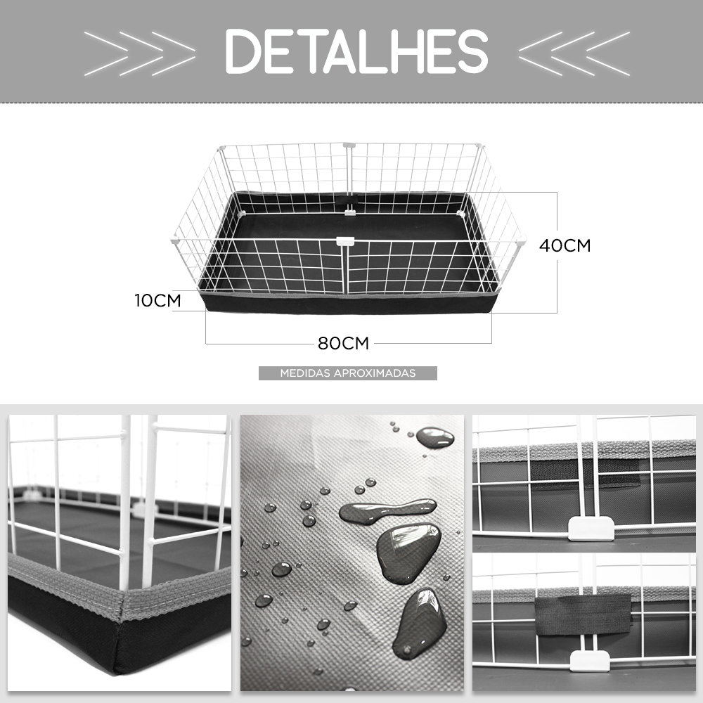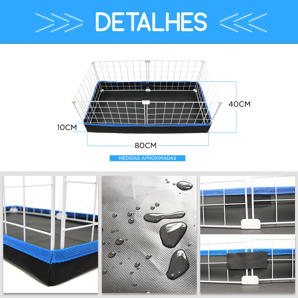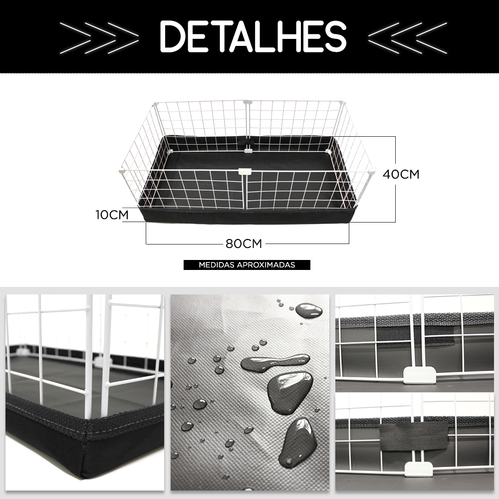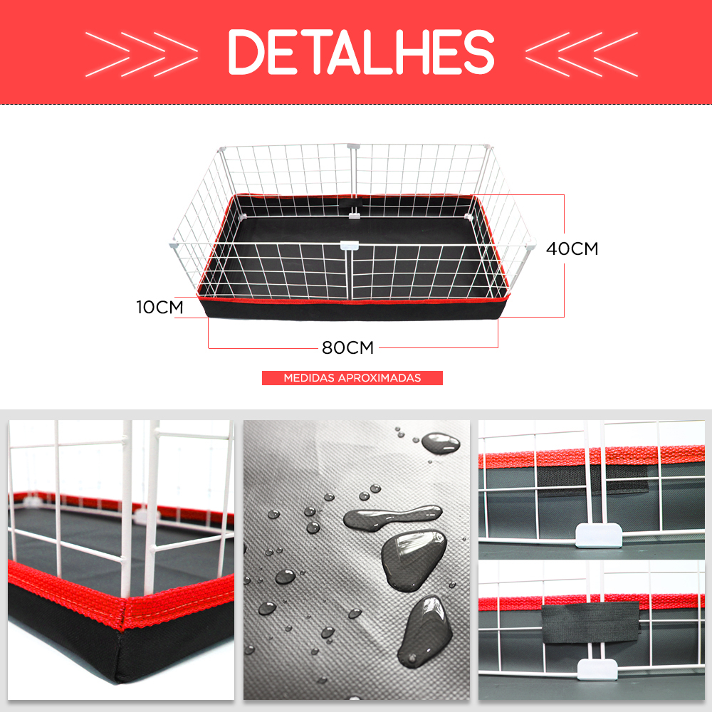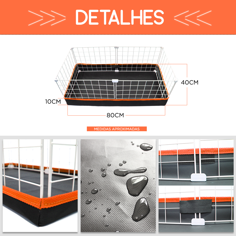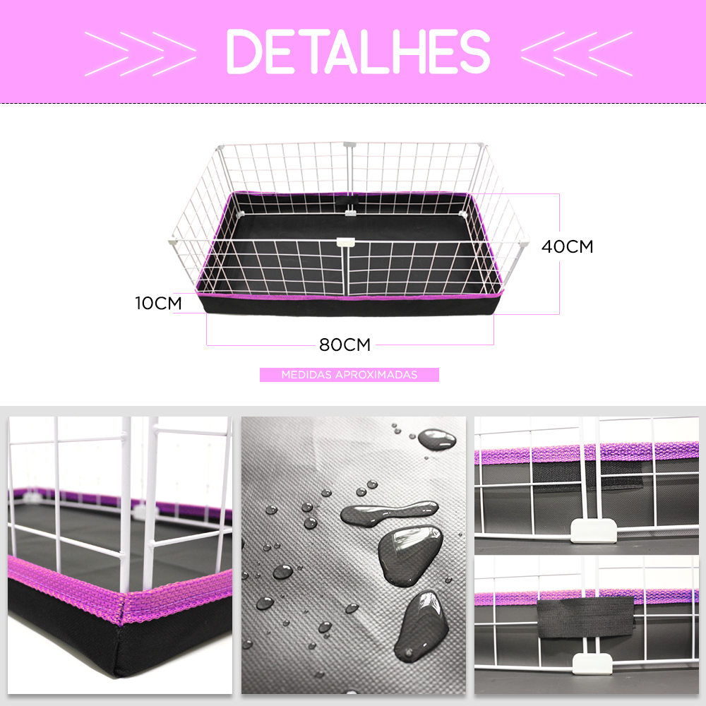 Cercado Porquinho da Índia 40x80cm Bandeja Higiênica Impermeável Nylon